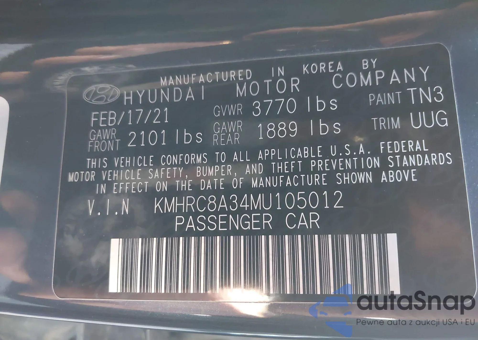 LOT: 43701561 VIN: KMHRC8A34MU105012