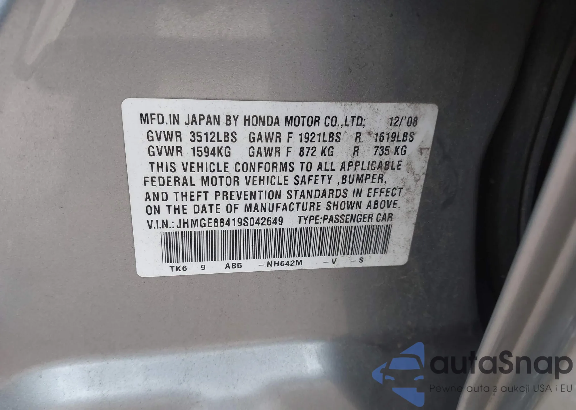 LOT: 43561935 VIN: 19UUA8F22AA000326