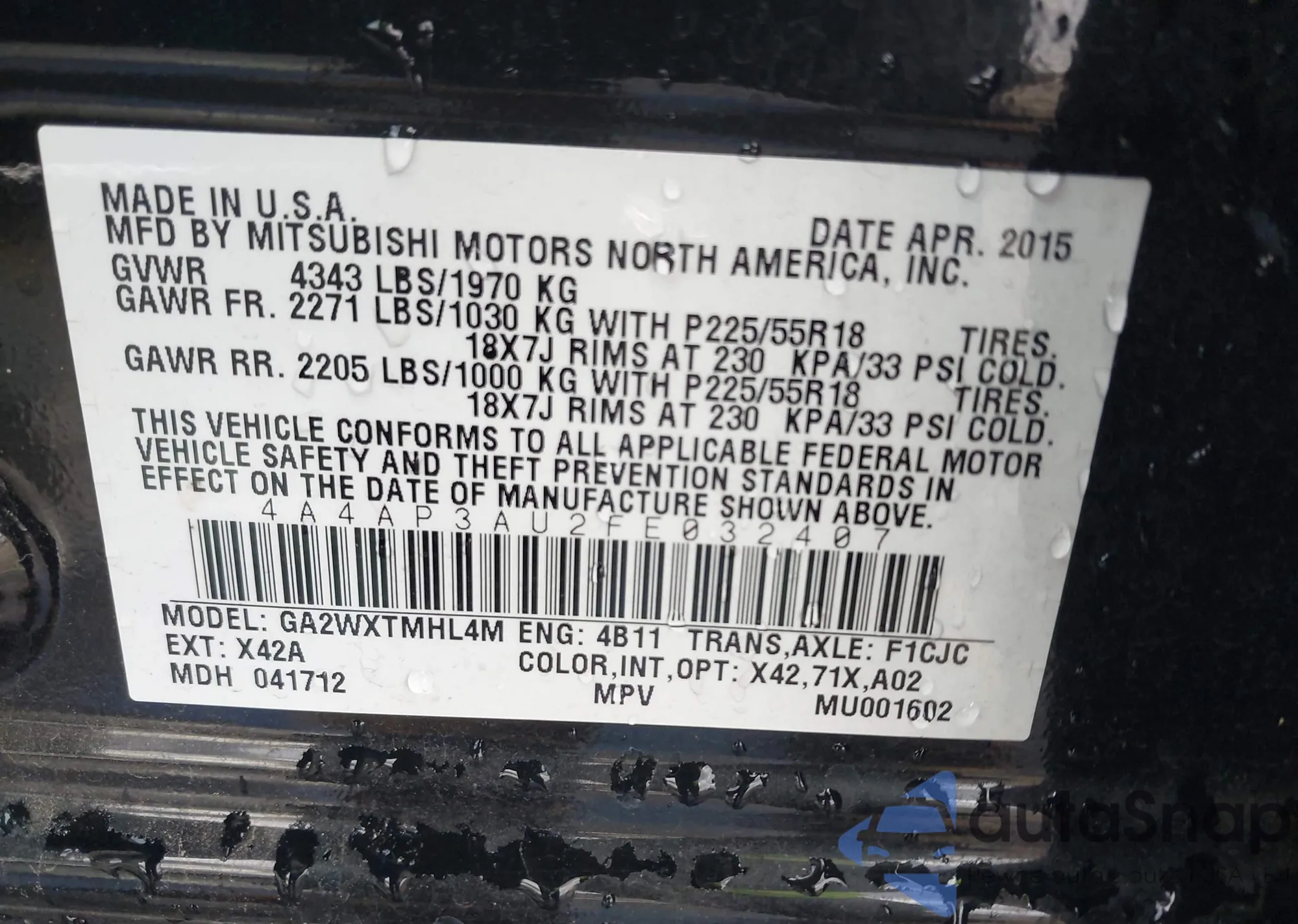• VIN 4A4AP3AU2FE032407