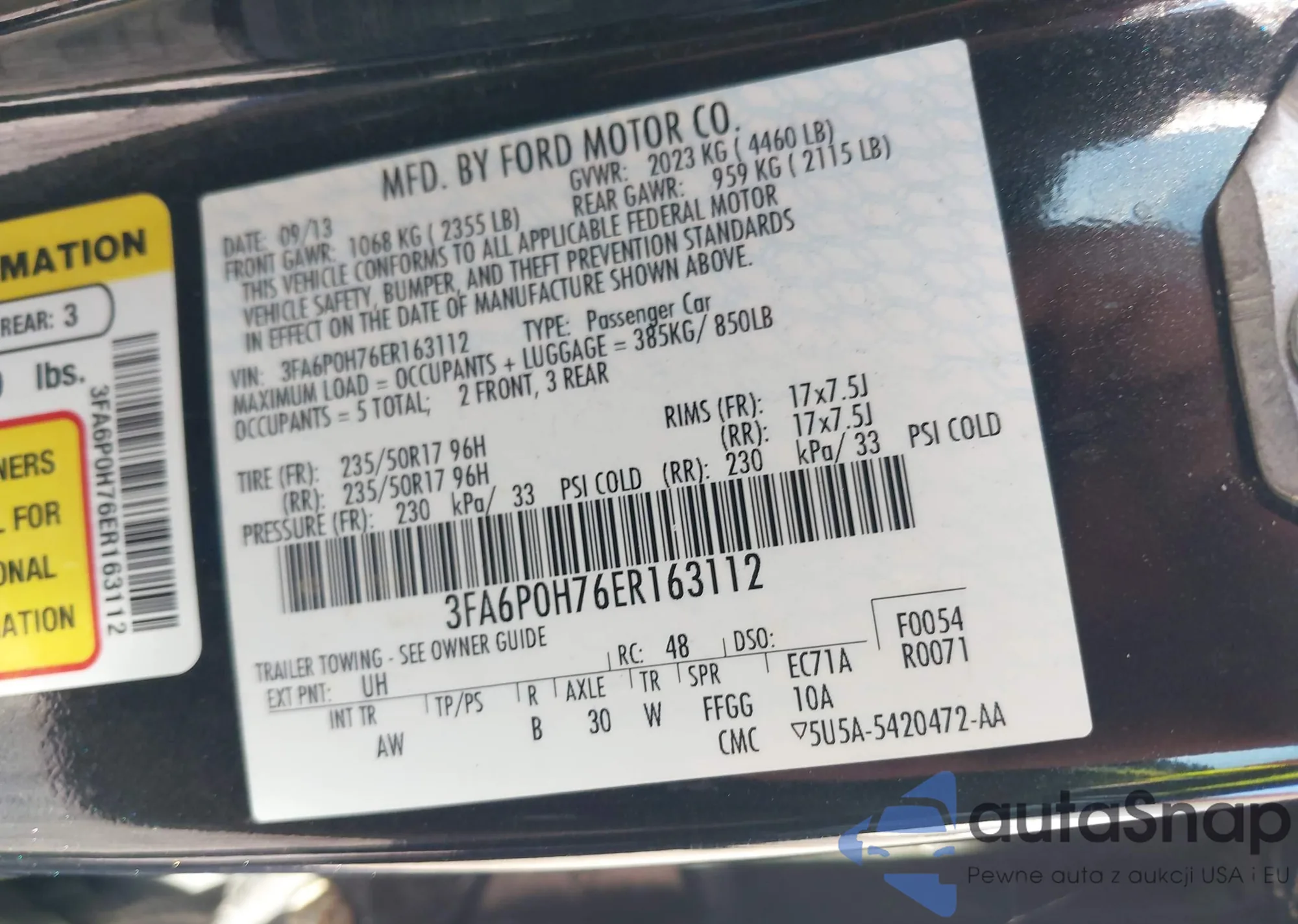 • VIN 3FA6P0H76ER163112