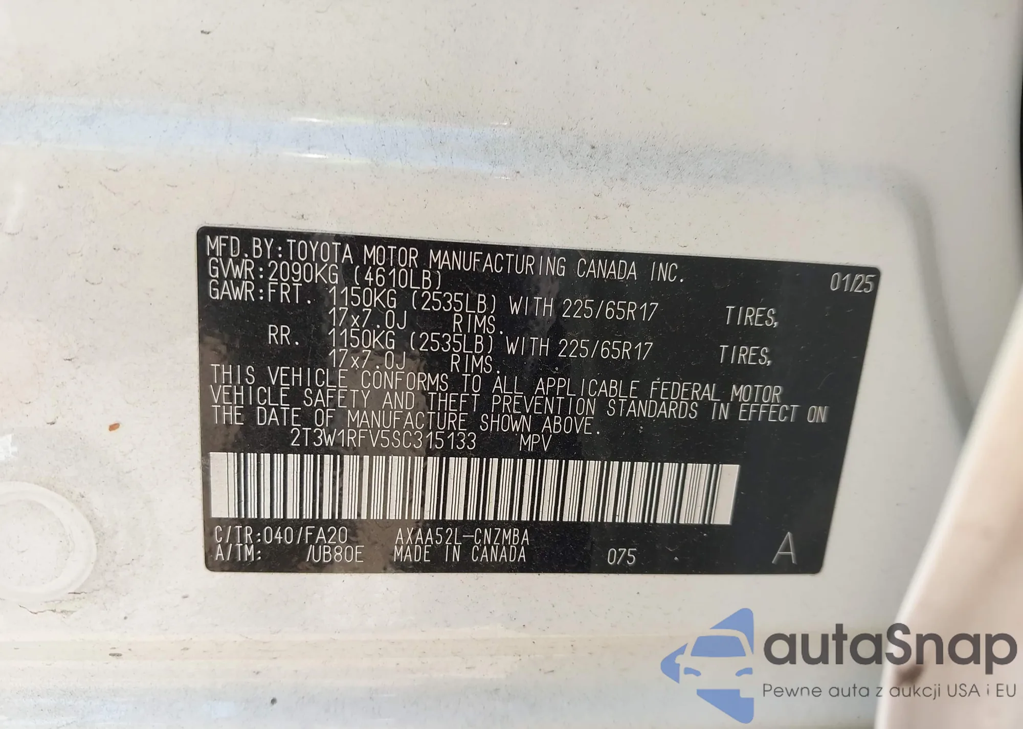 • VIN 2T3W1RFV5SC315133