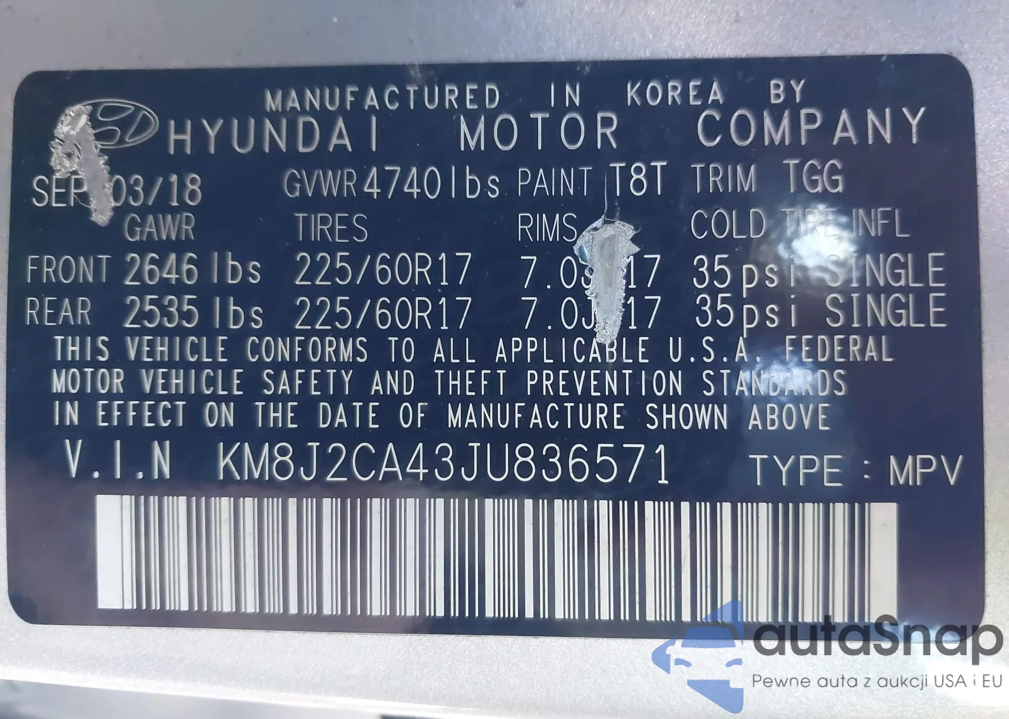 • VIN KM8J2CA43JU836571