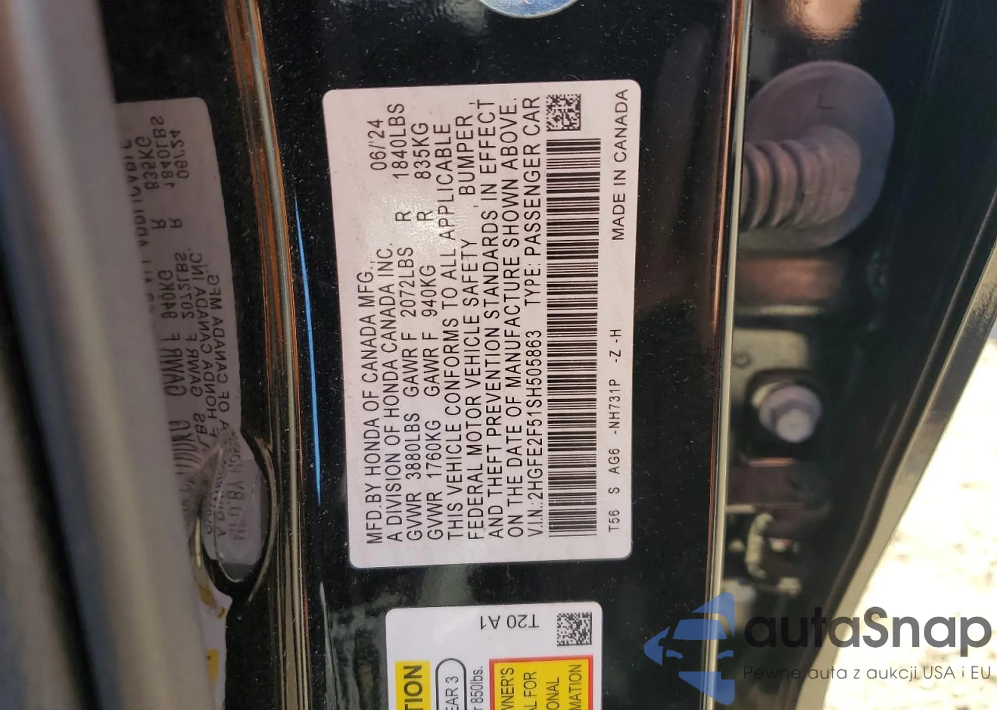 • VIN 2HGFE2F51SH505863
