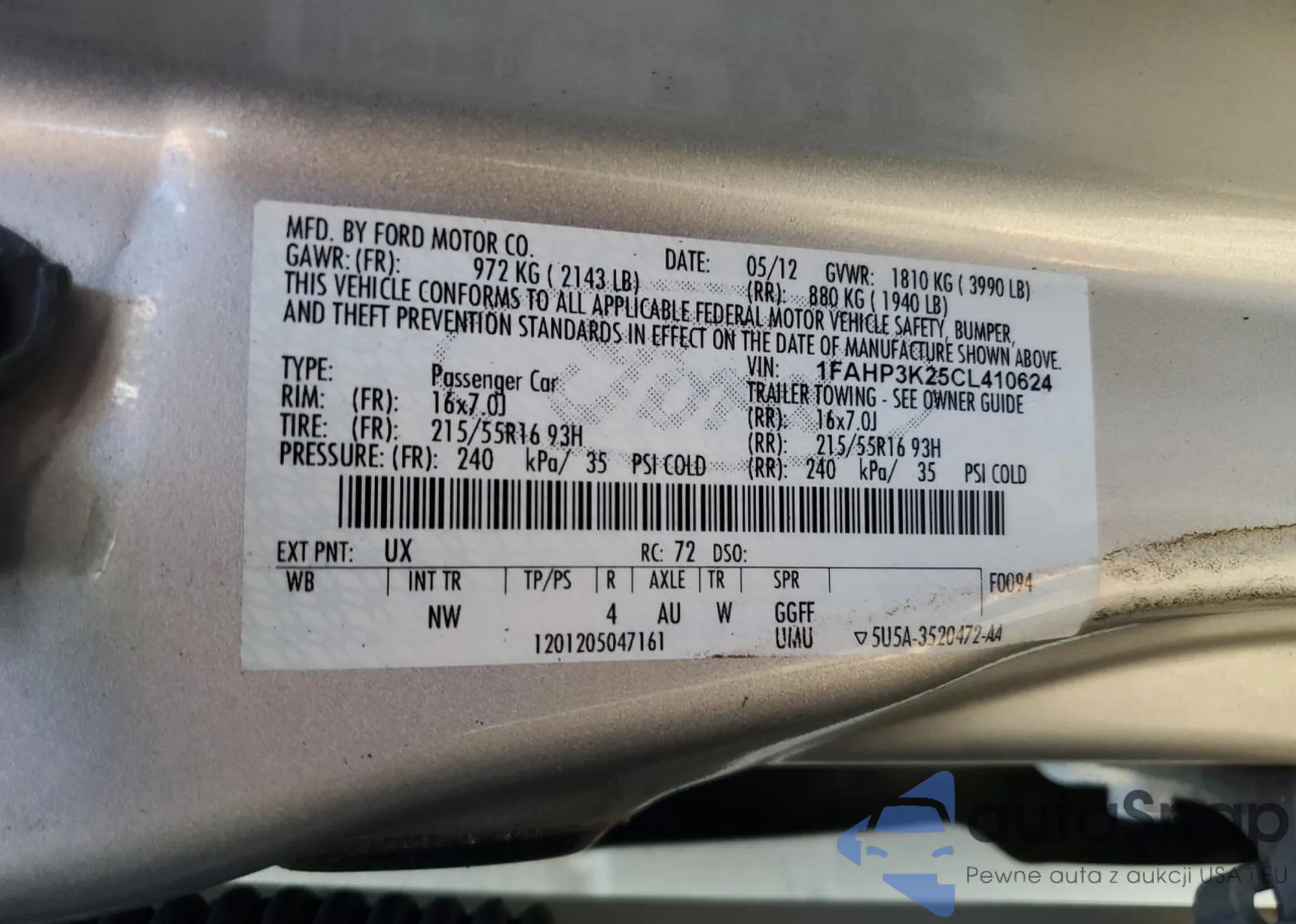 LOT: 91819815 VIN: 1FAHP3K25CL410624
