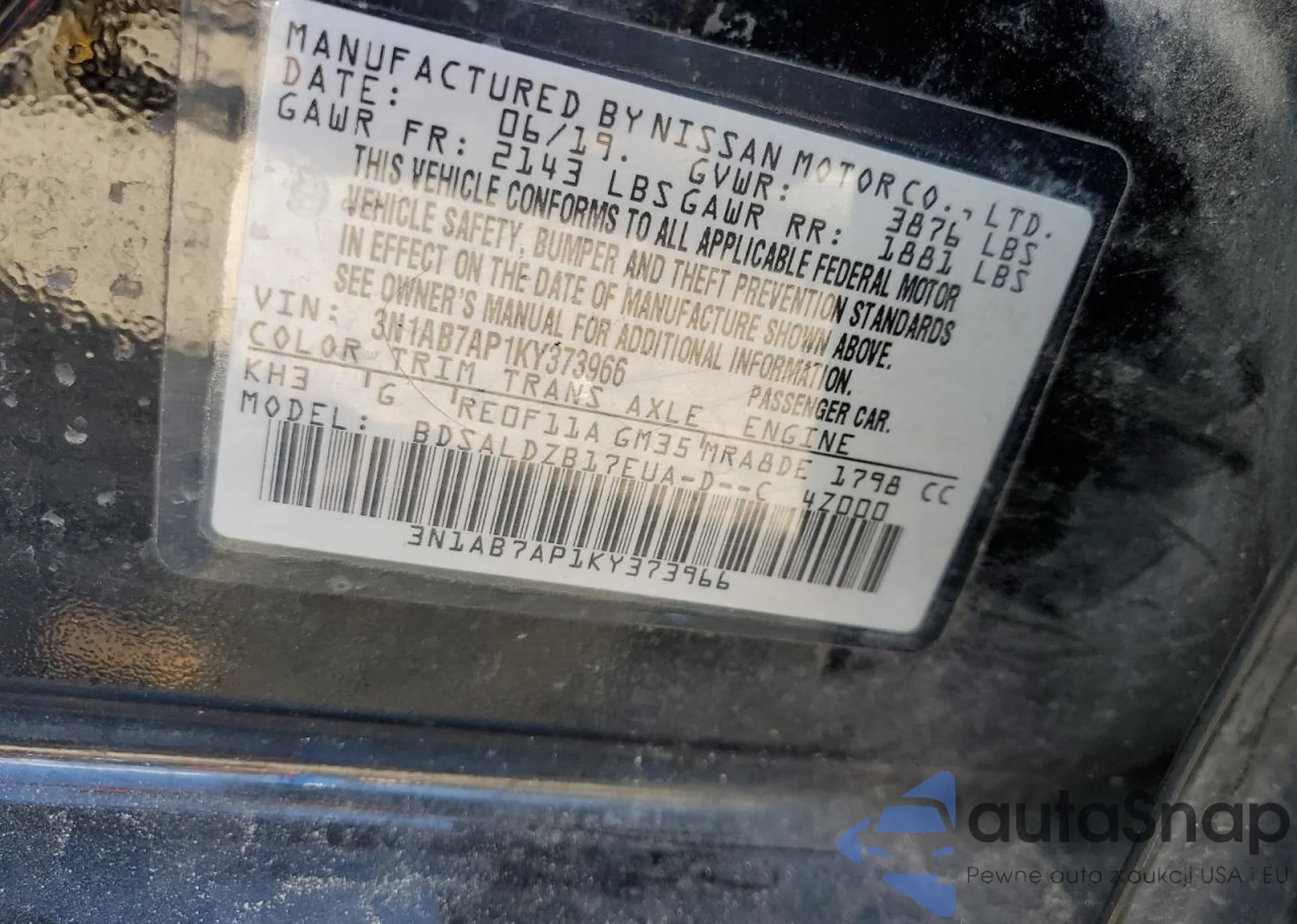 • VIN 3N1AB7AP1KY373966