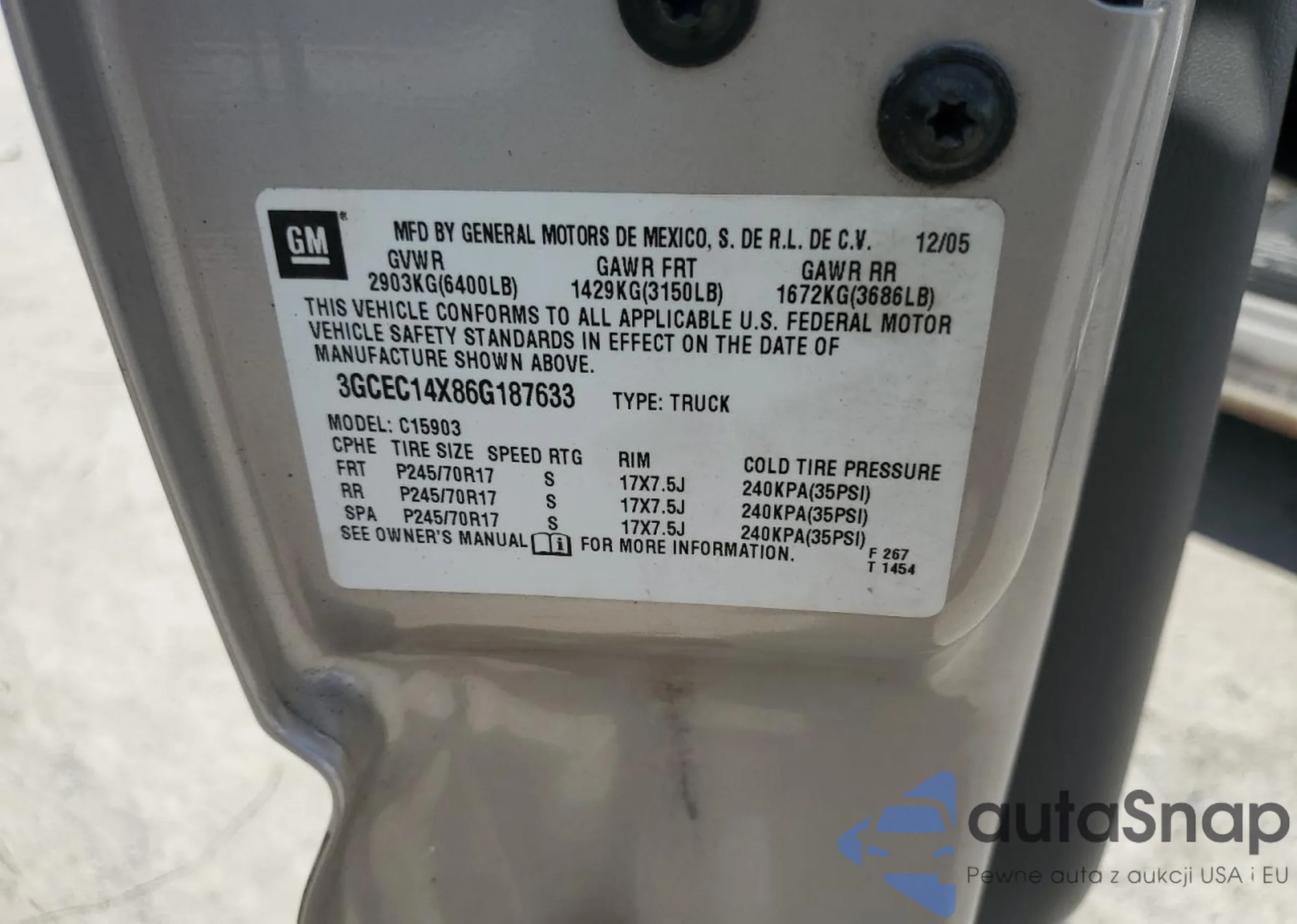 LOT: 84458865 VIN: 3GCEC14X86G187633