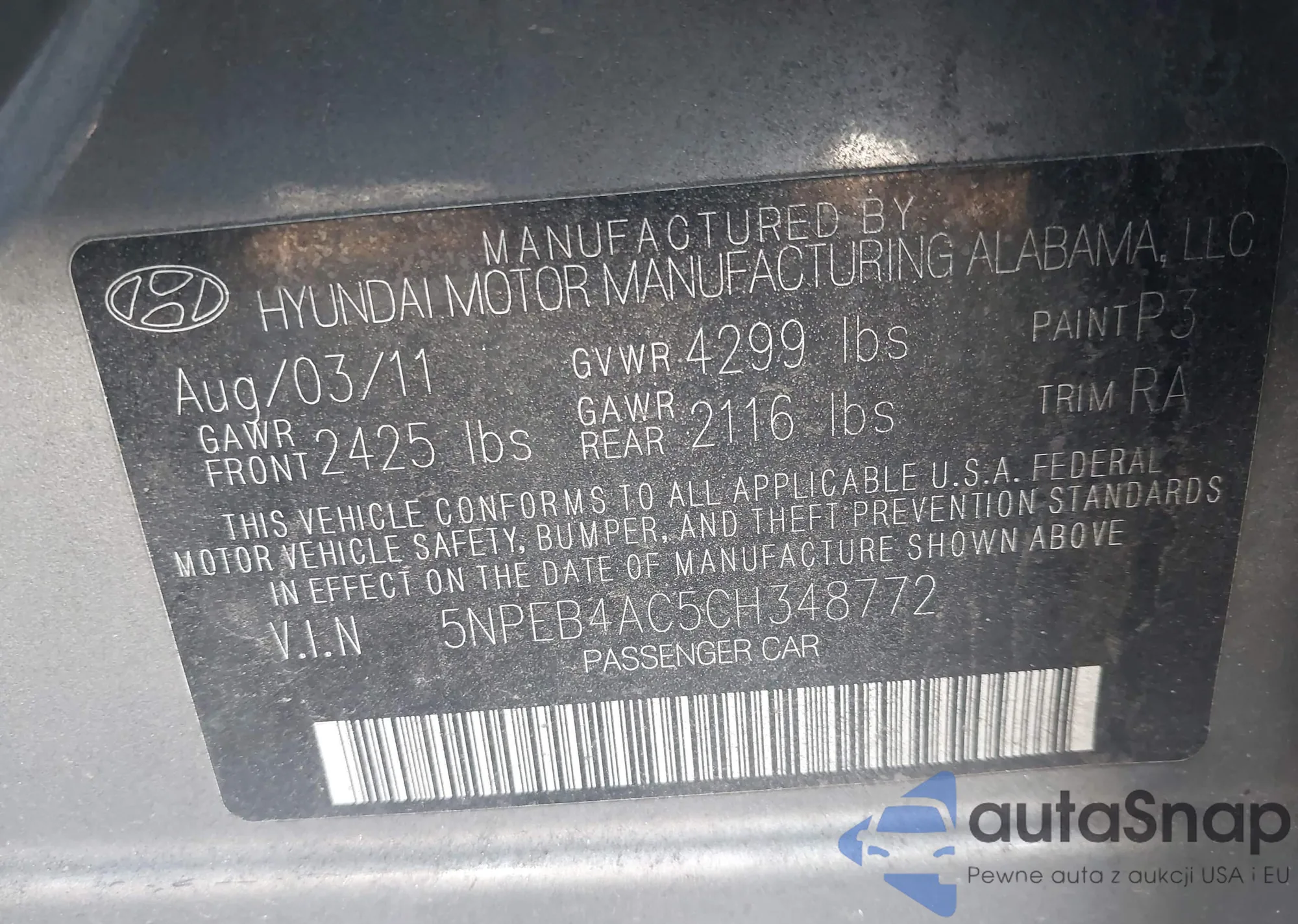 LOT: 43744350 VIN: WDDGF8BB5BR171230