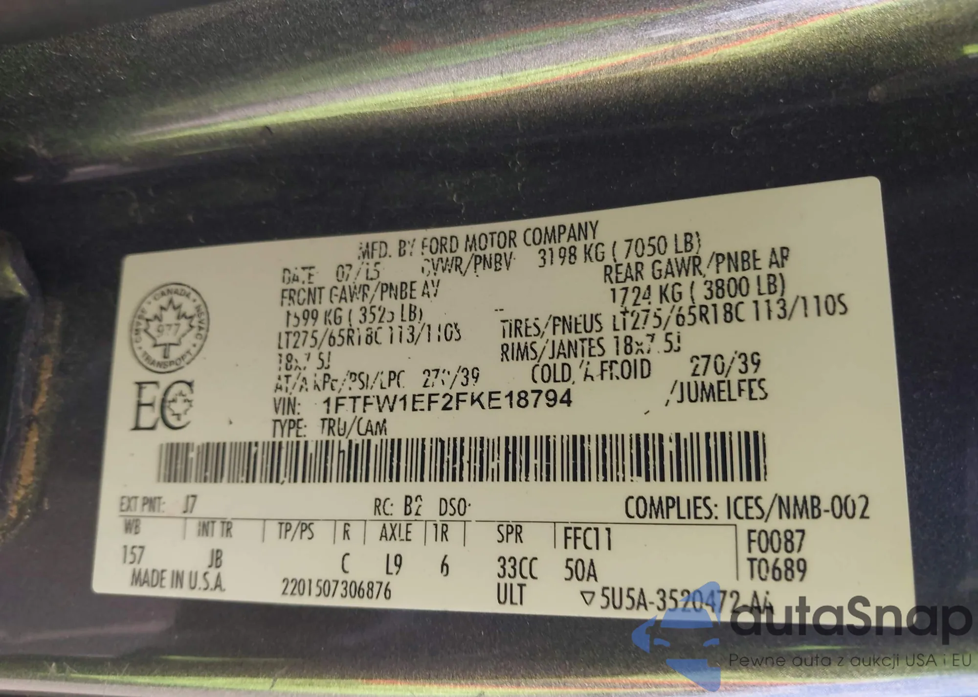 • VIN 1FTFW1EF2FKE18794