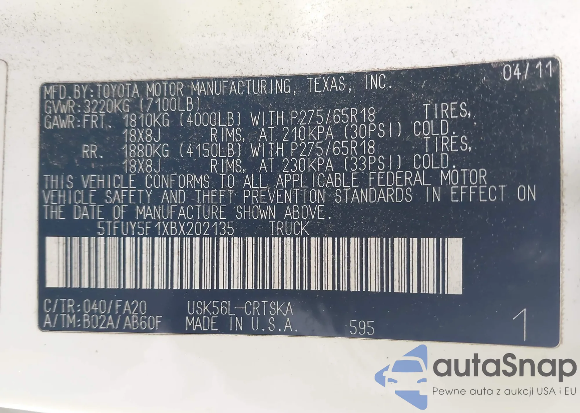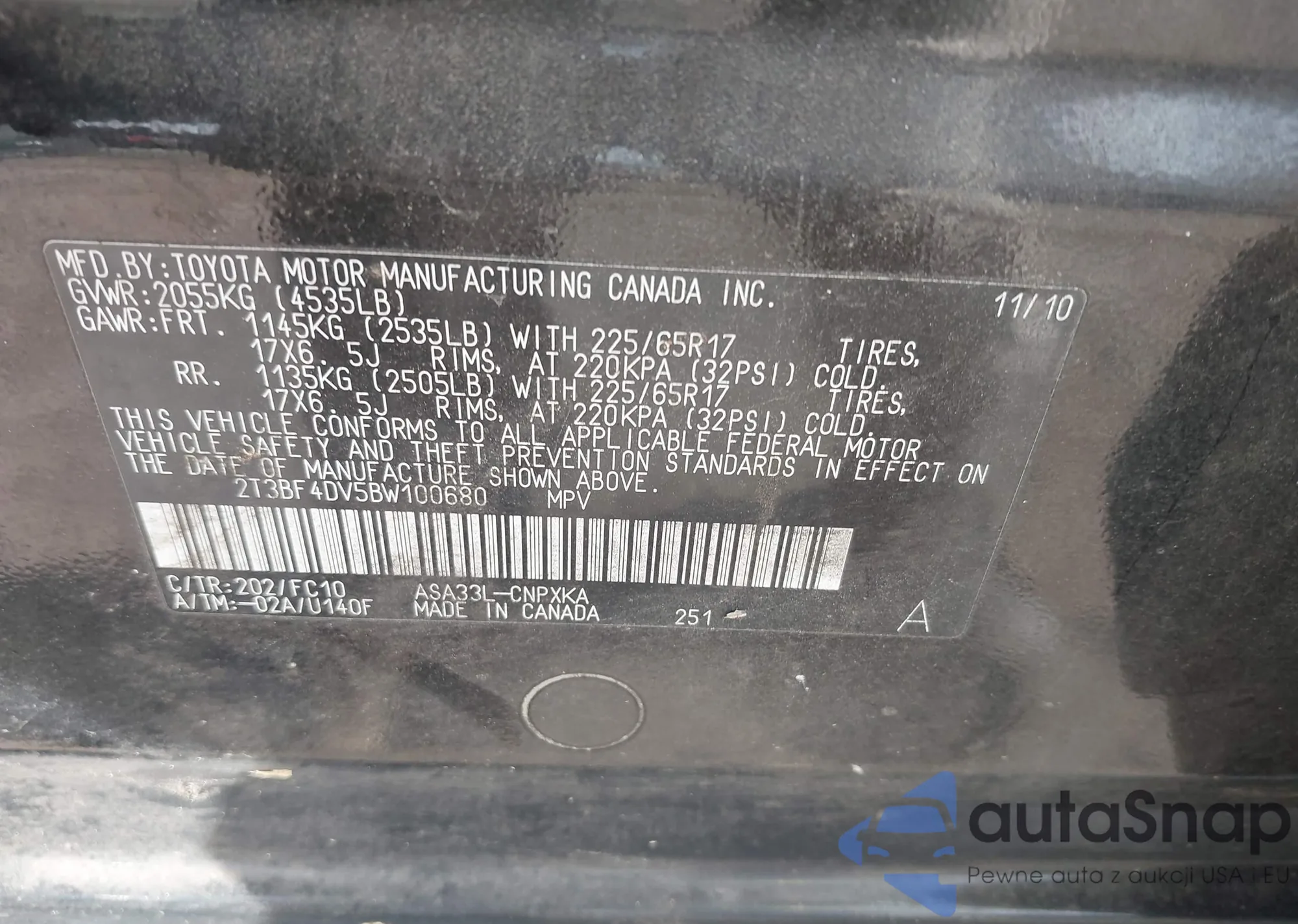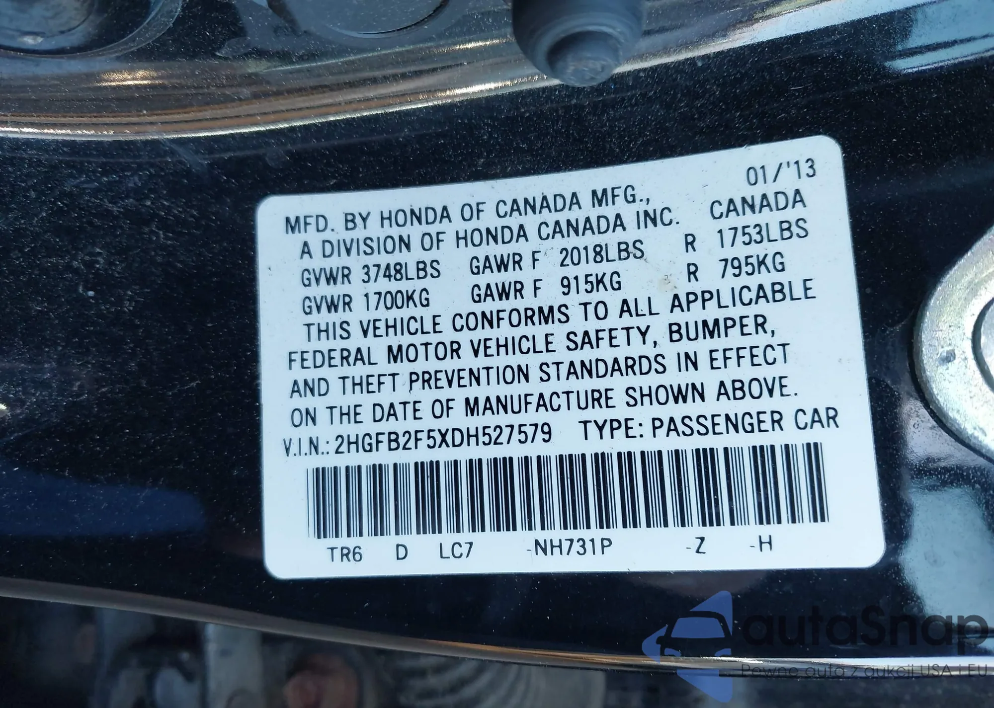 • VIN 7FARW2H53JE008876