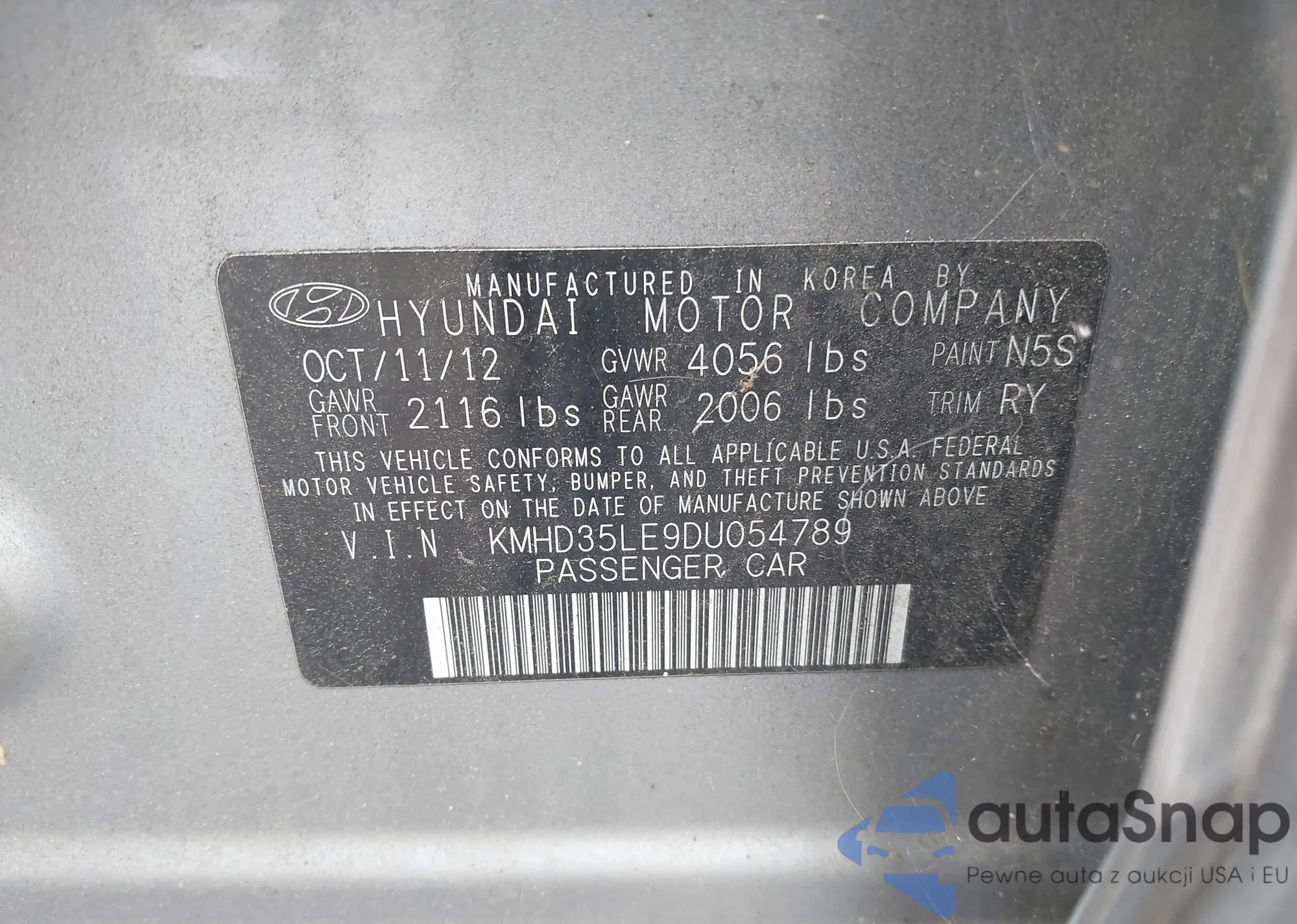 • VIN KMHD35LE9DU054789
