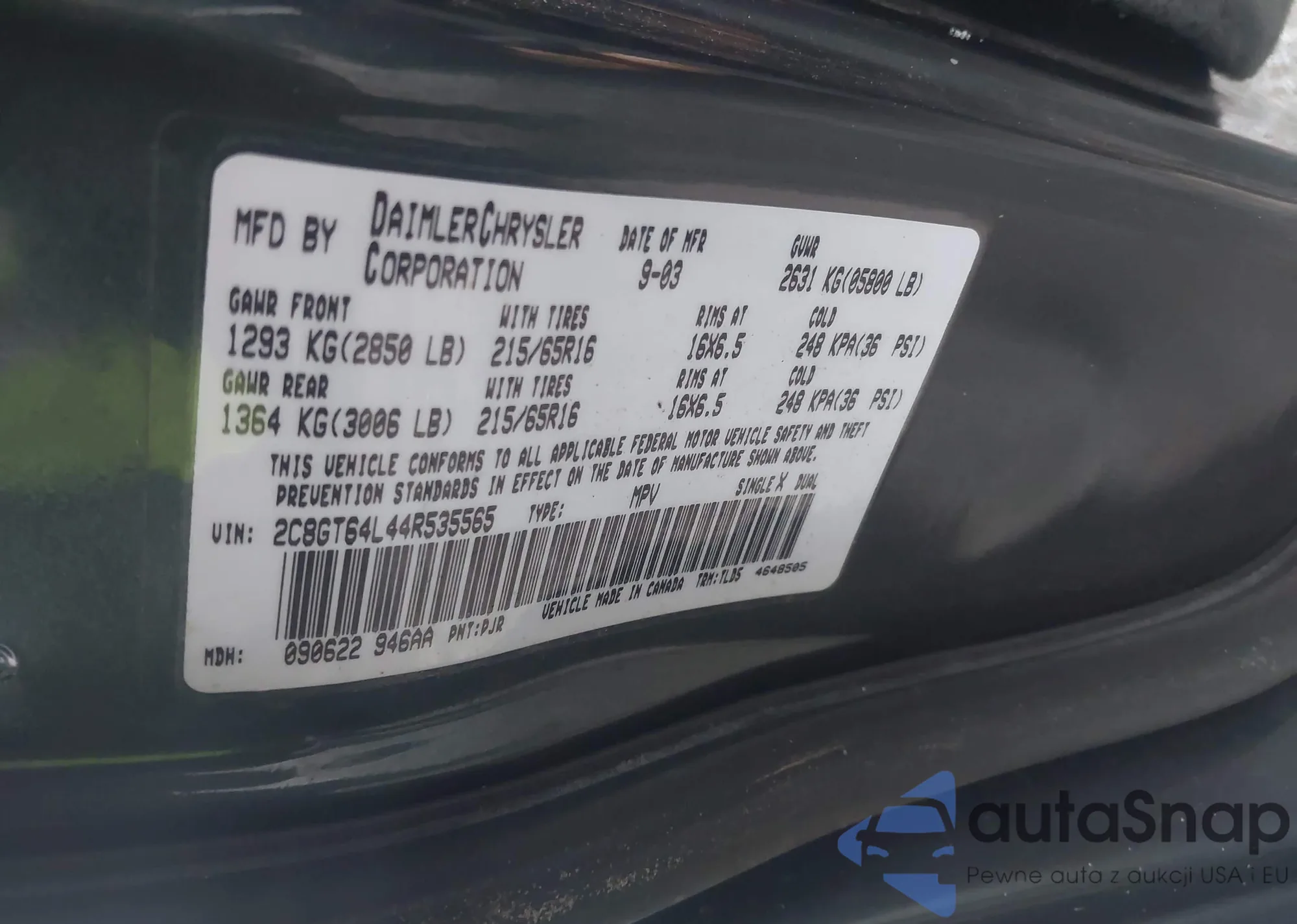 • VIN 2C8GT64L44R535565