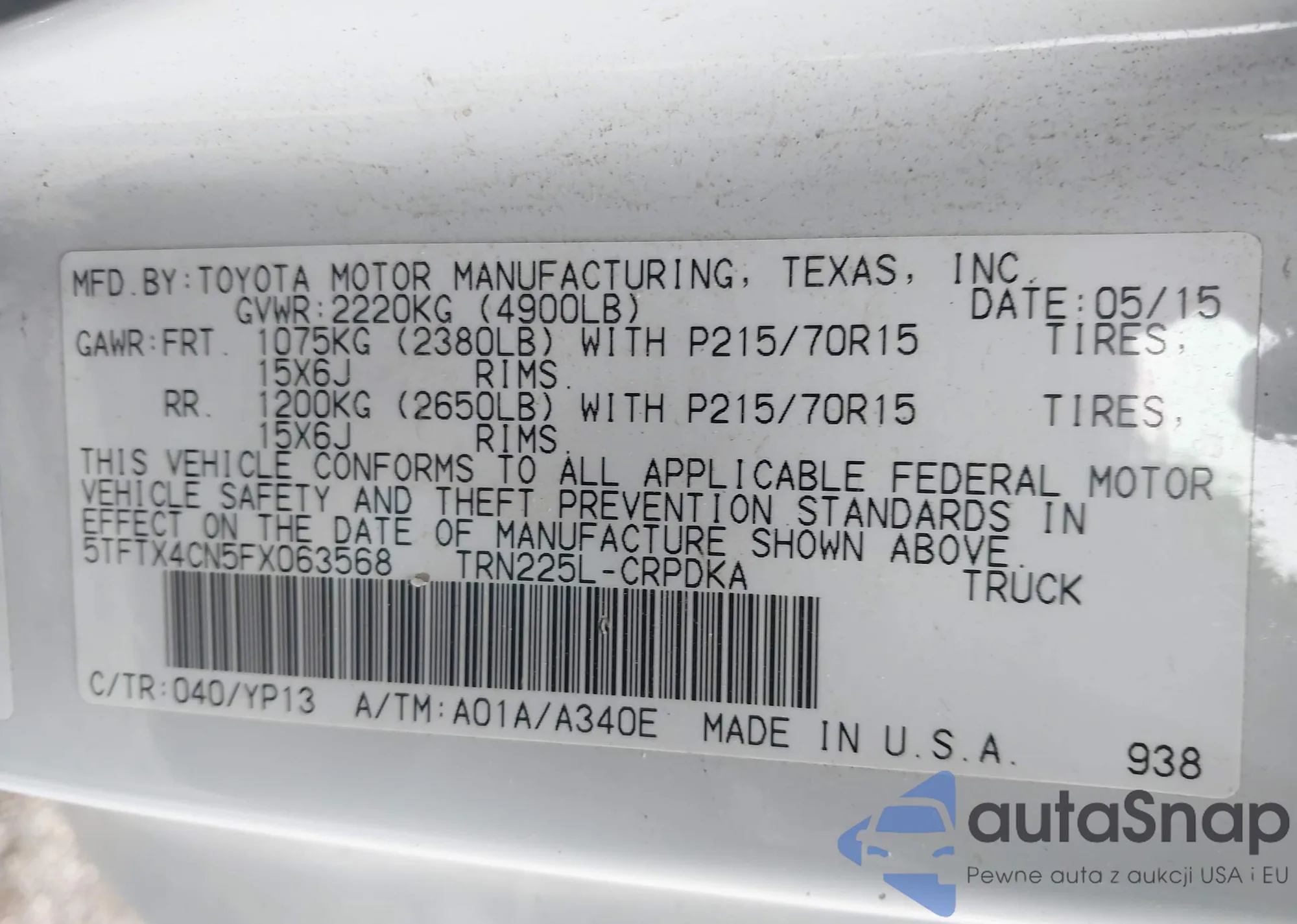 • VIN 5TFTX4CN5FX063568