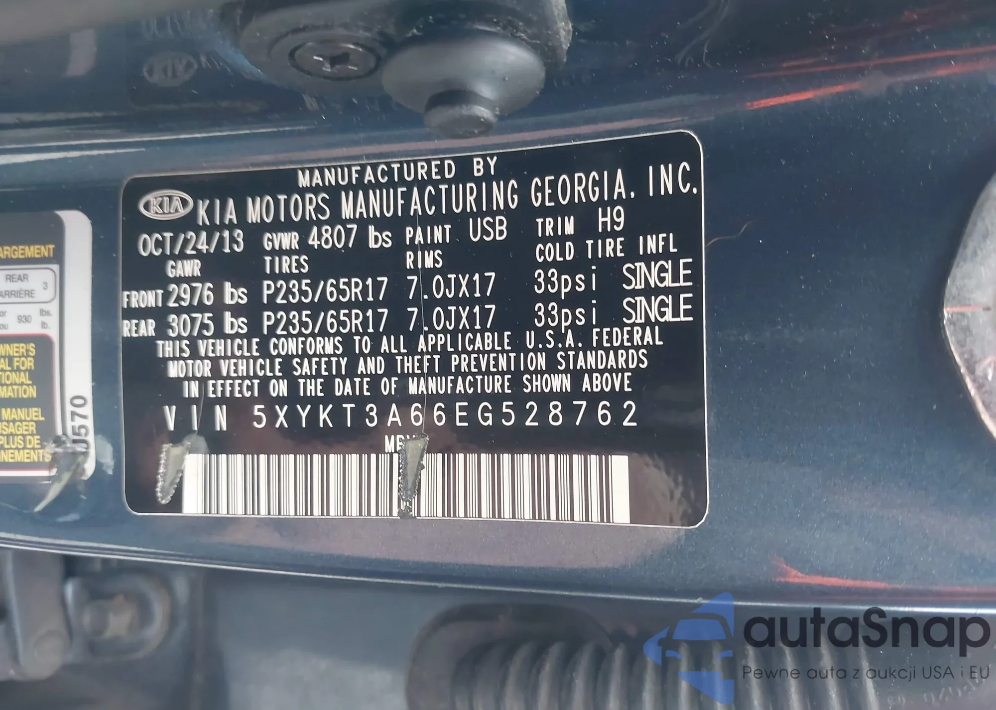 • VIN 5XYKT3A66EG528762