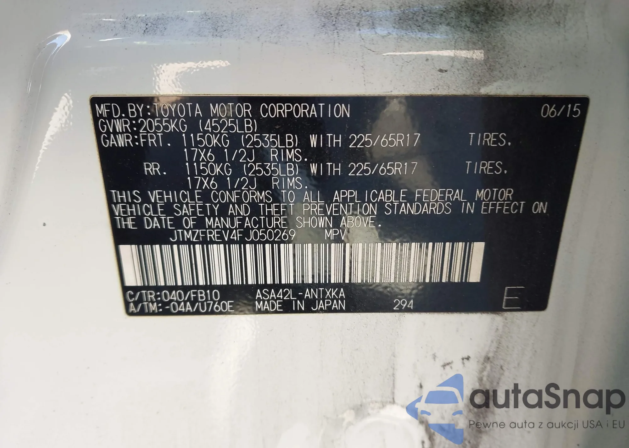 LOT: 43511105 VIN: JT4JM11D2T0010470