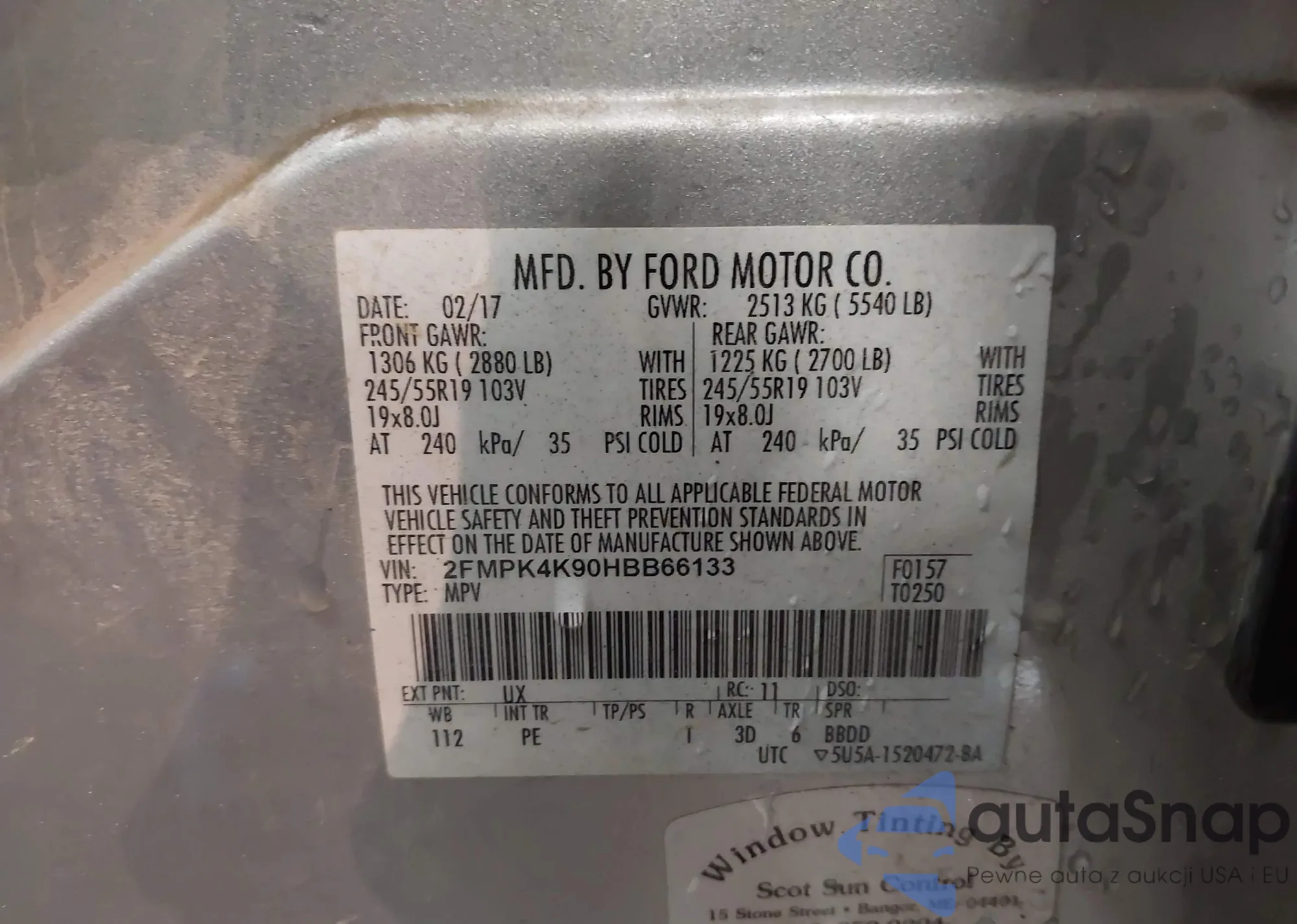 • VIN 2FMPK4K90HBB66133