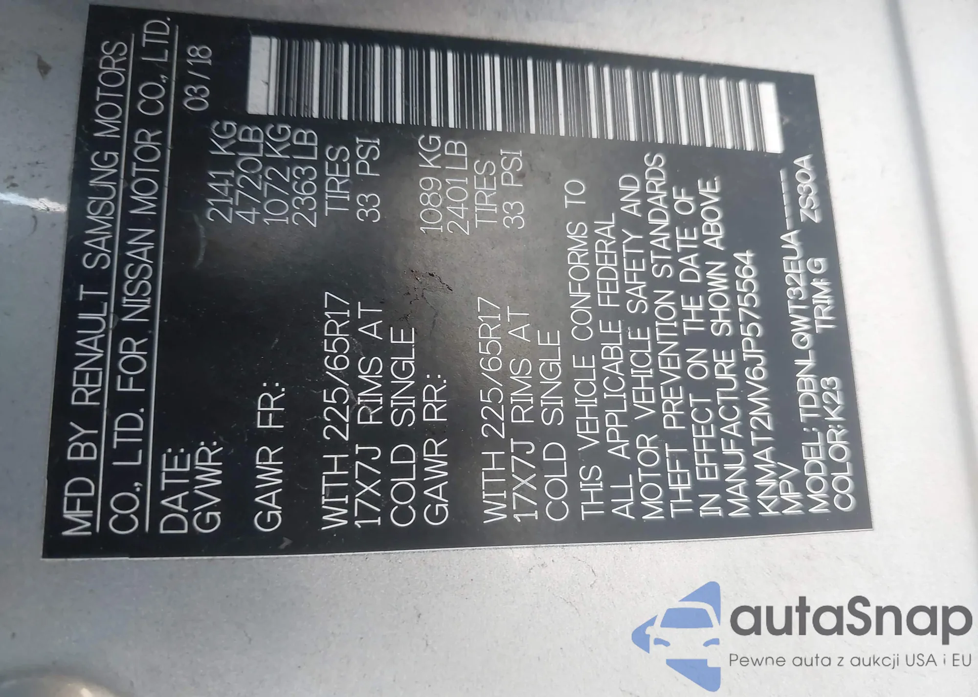 LOT: 43616420 VIN: JN8AT3BBXMW213475