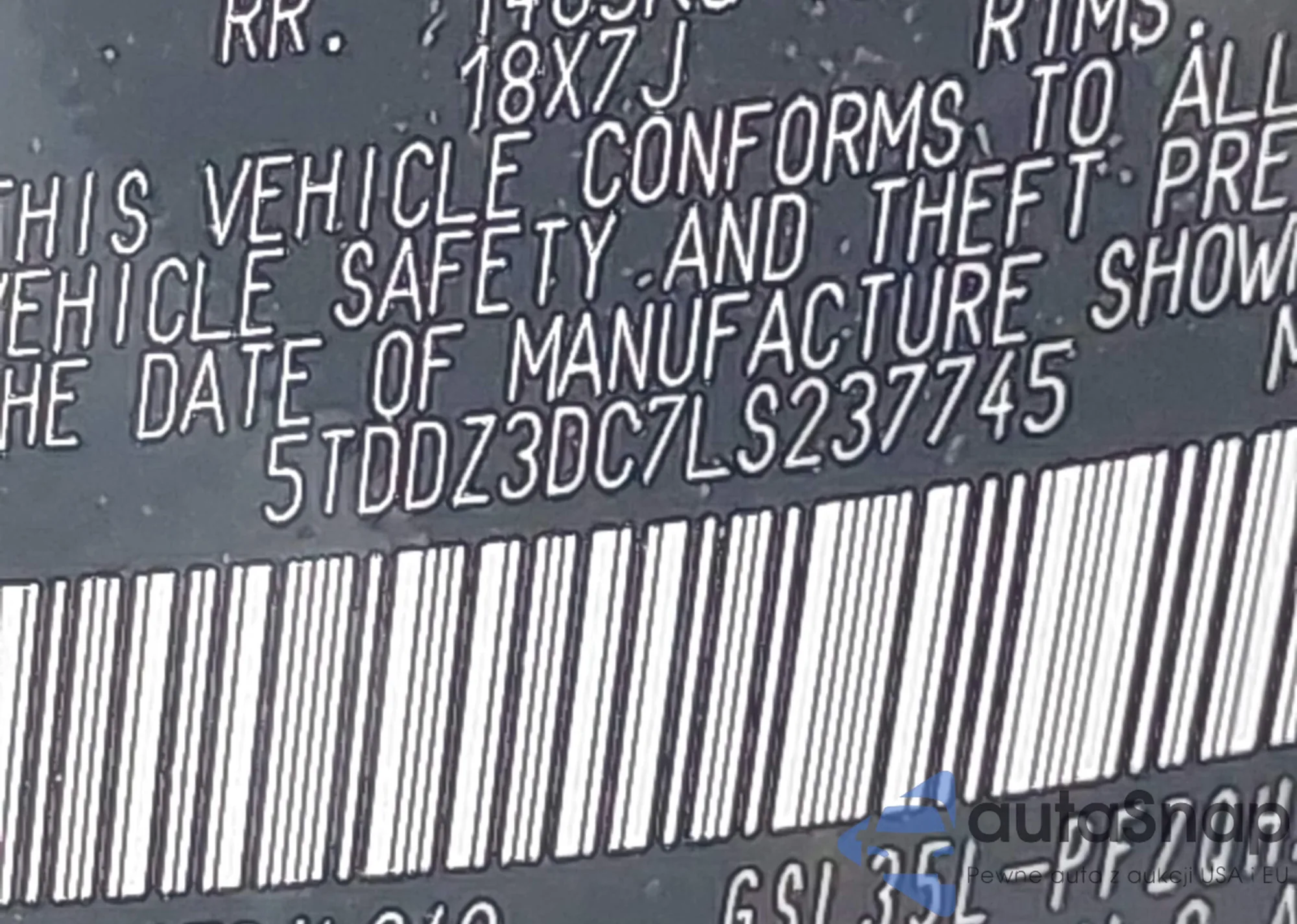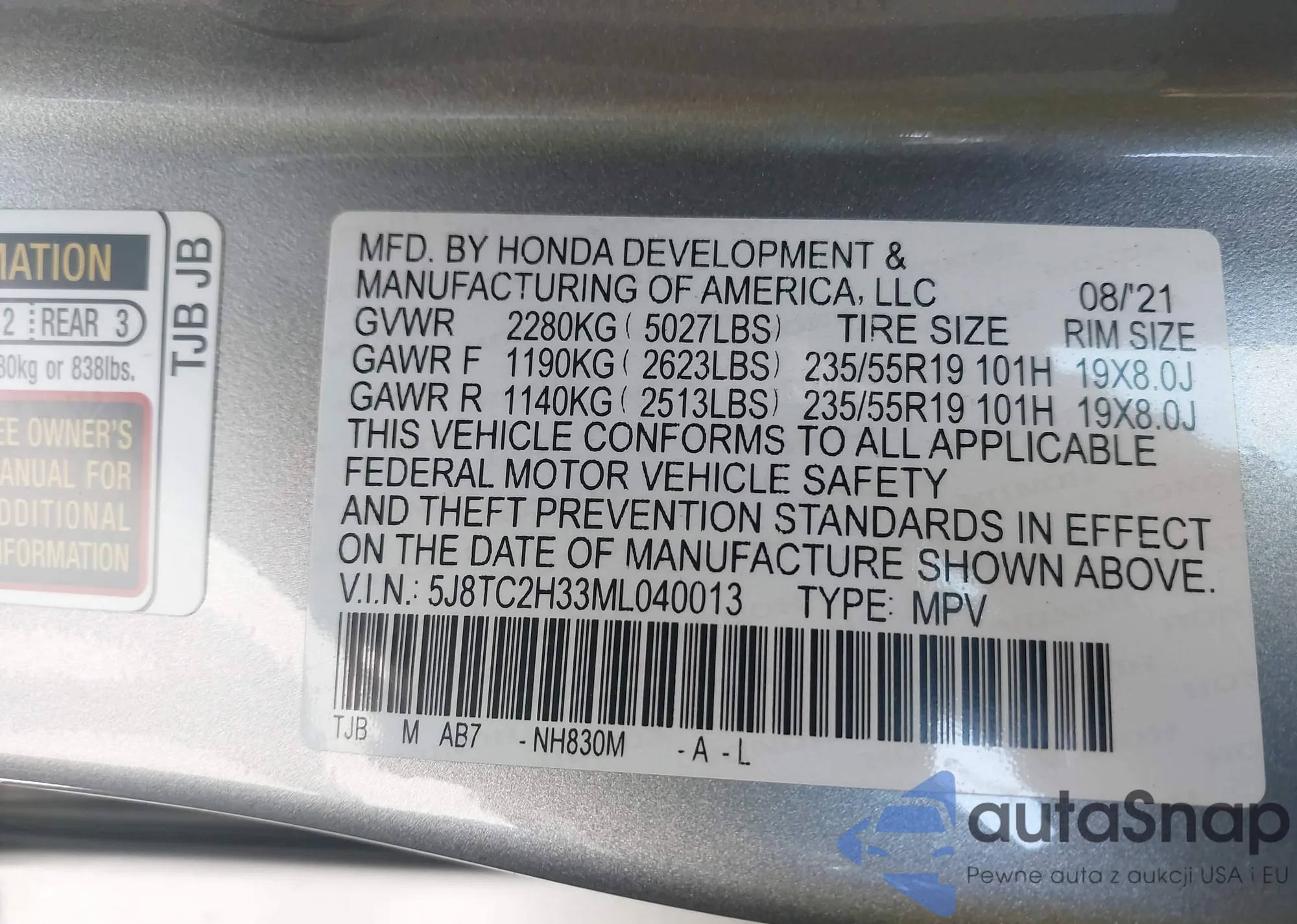 • VIN 5J8TC2H33ML040013