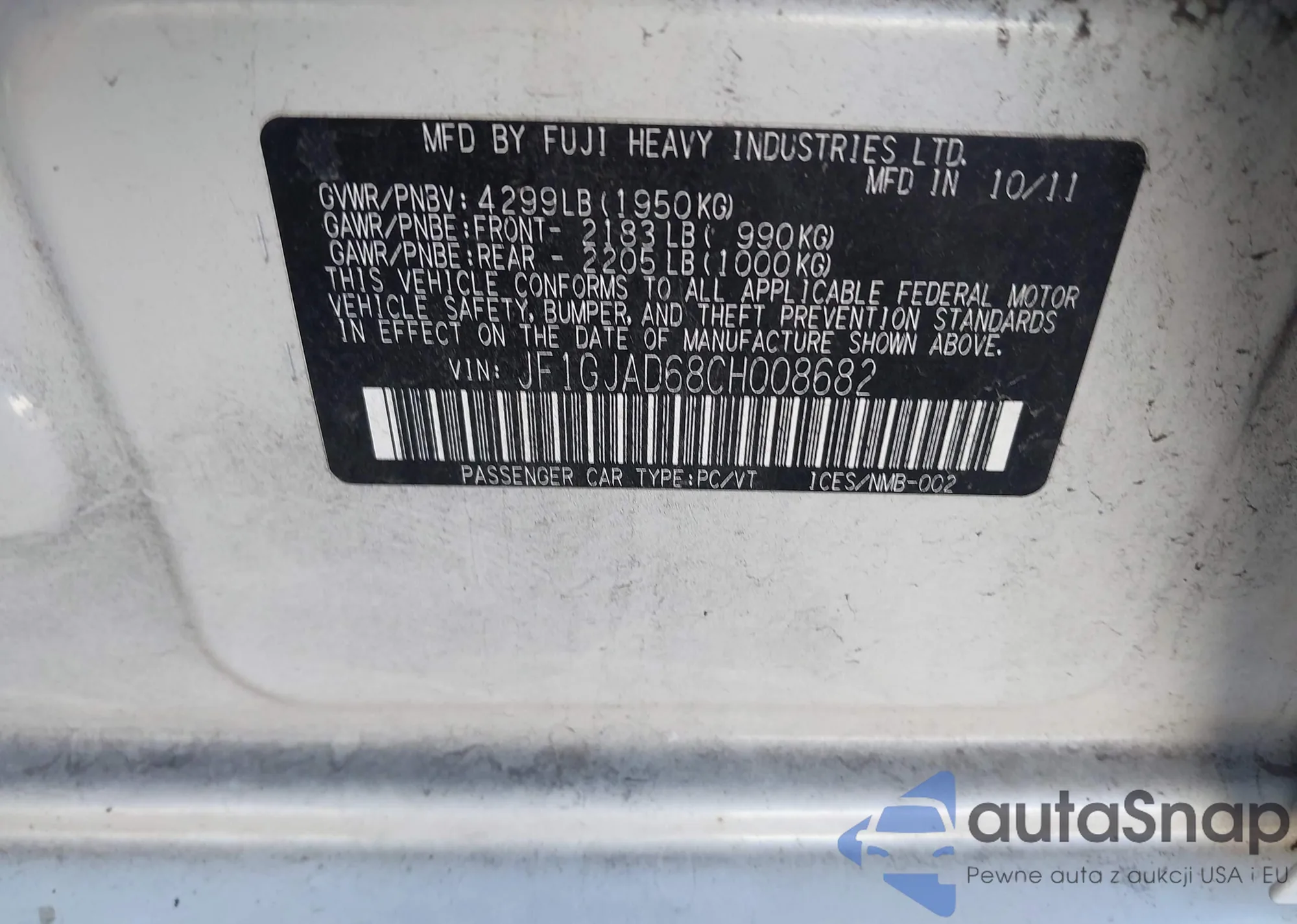 LOT: 43795199 VIN: 19UUA8F22CA015900