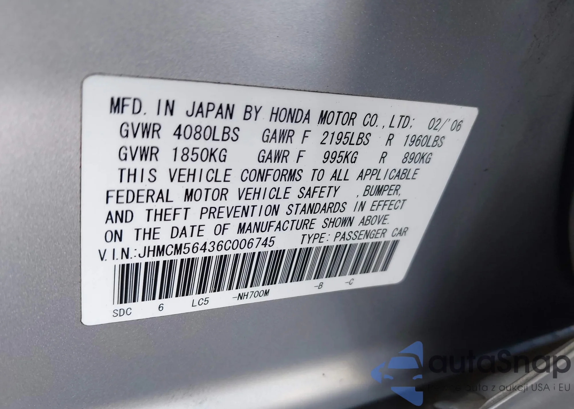 • VIN JHMCM56436C006745