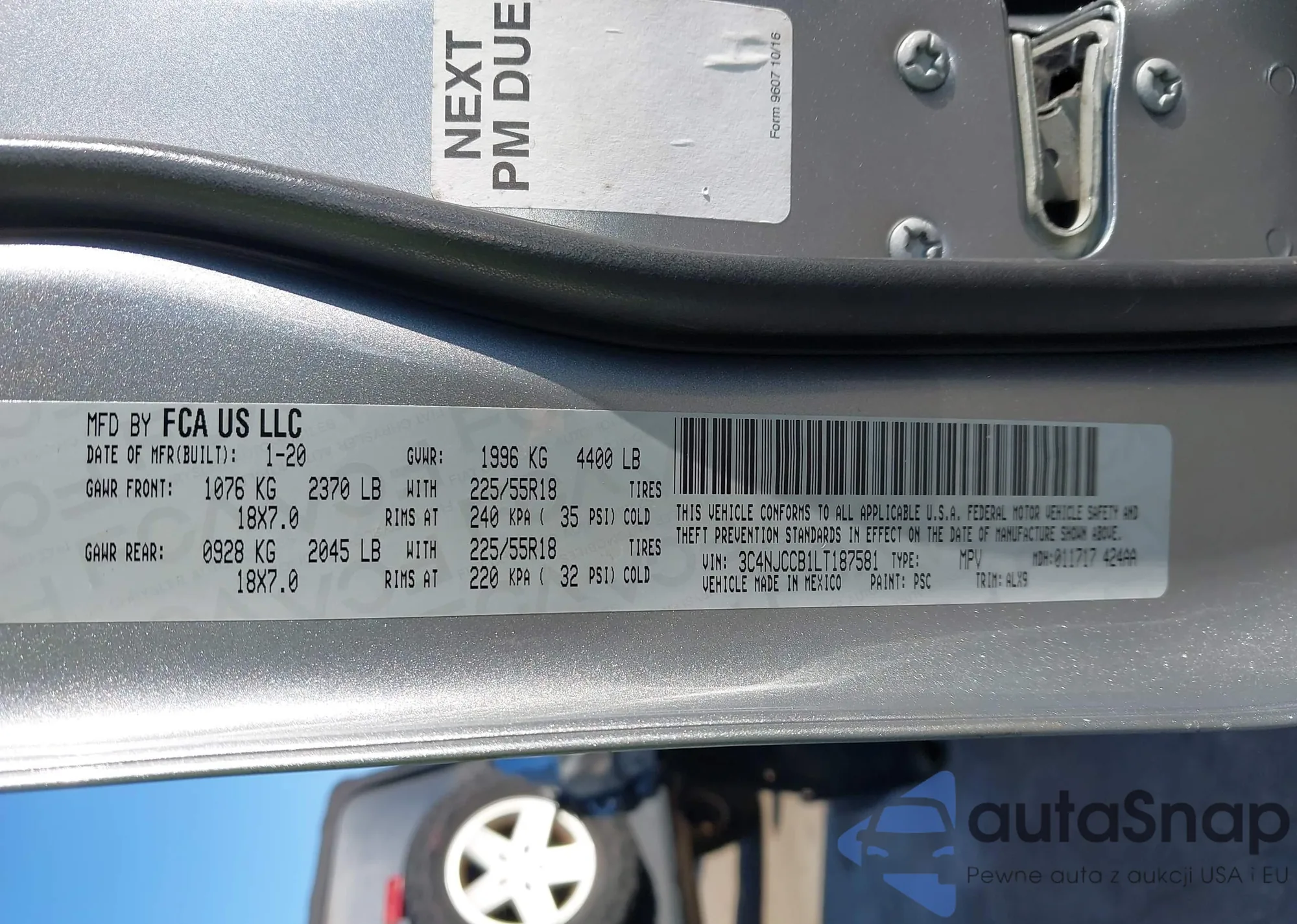 • VIN 3C4NJCCB1LT187581