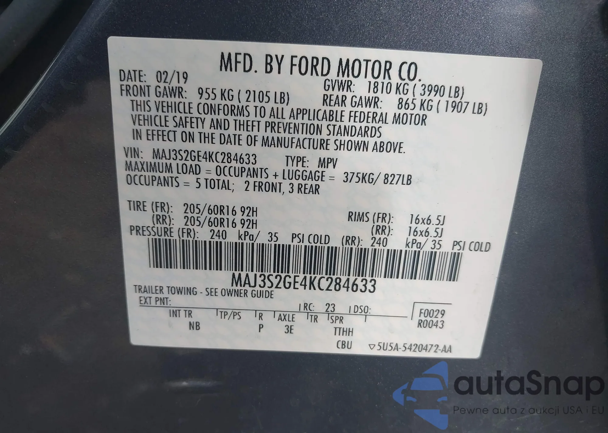 • VIN 5TFPX4EN5BX003038