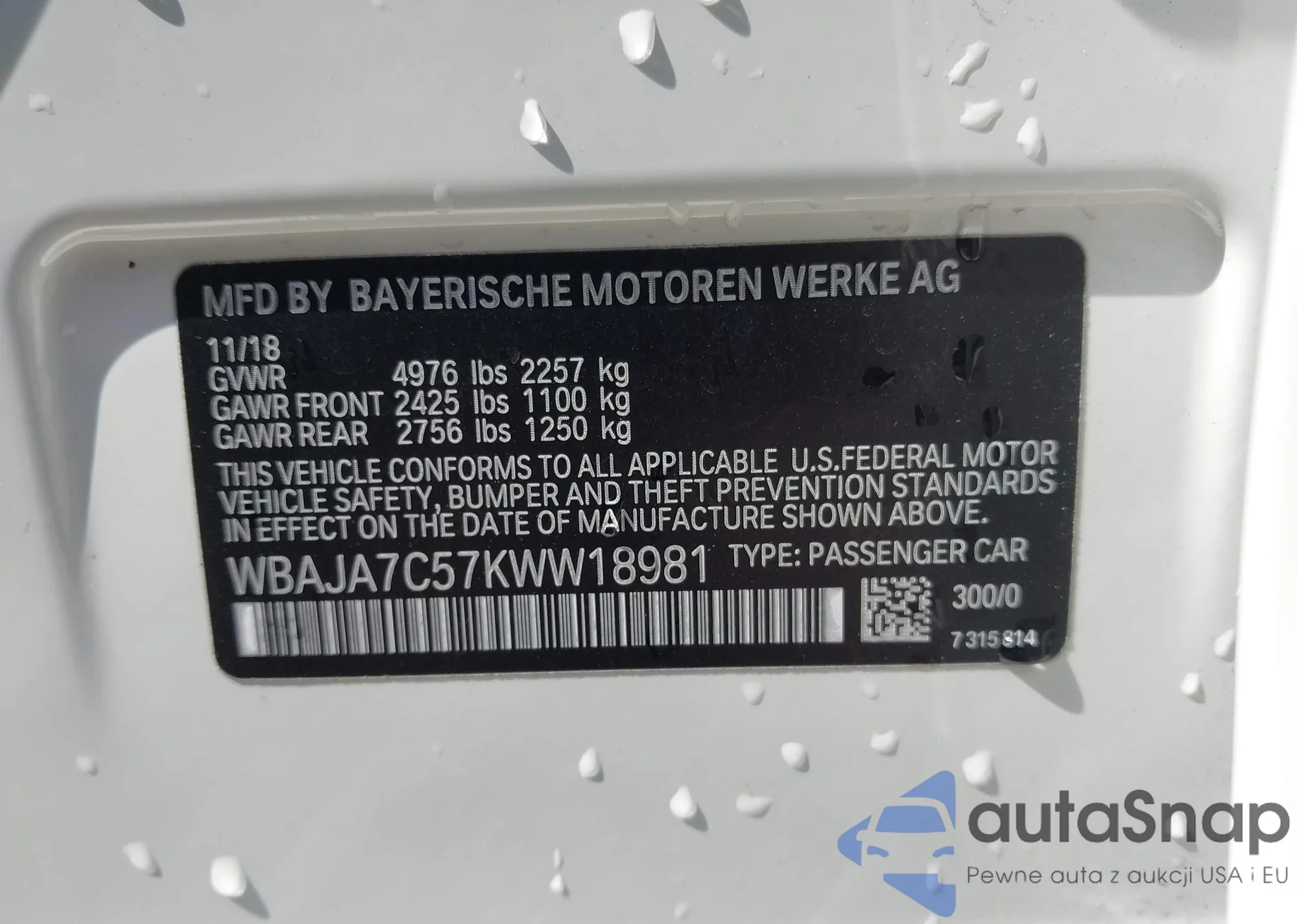 • VIN WBAJA7C57KWW18981