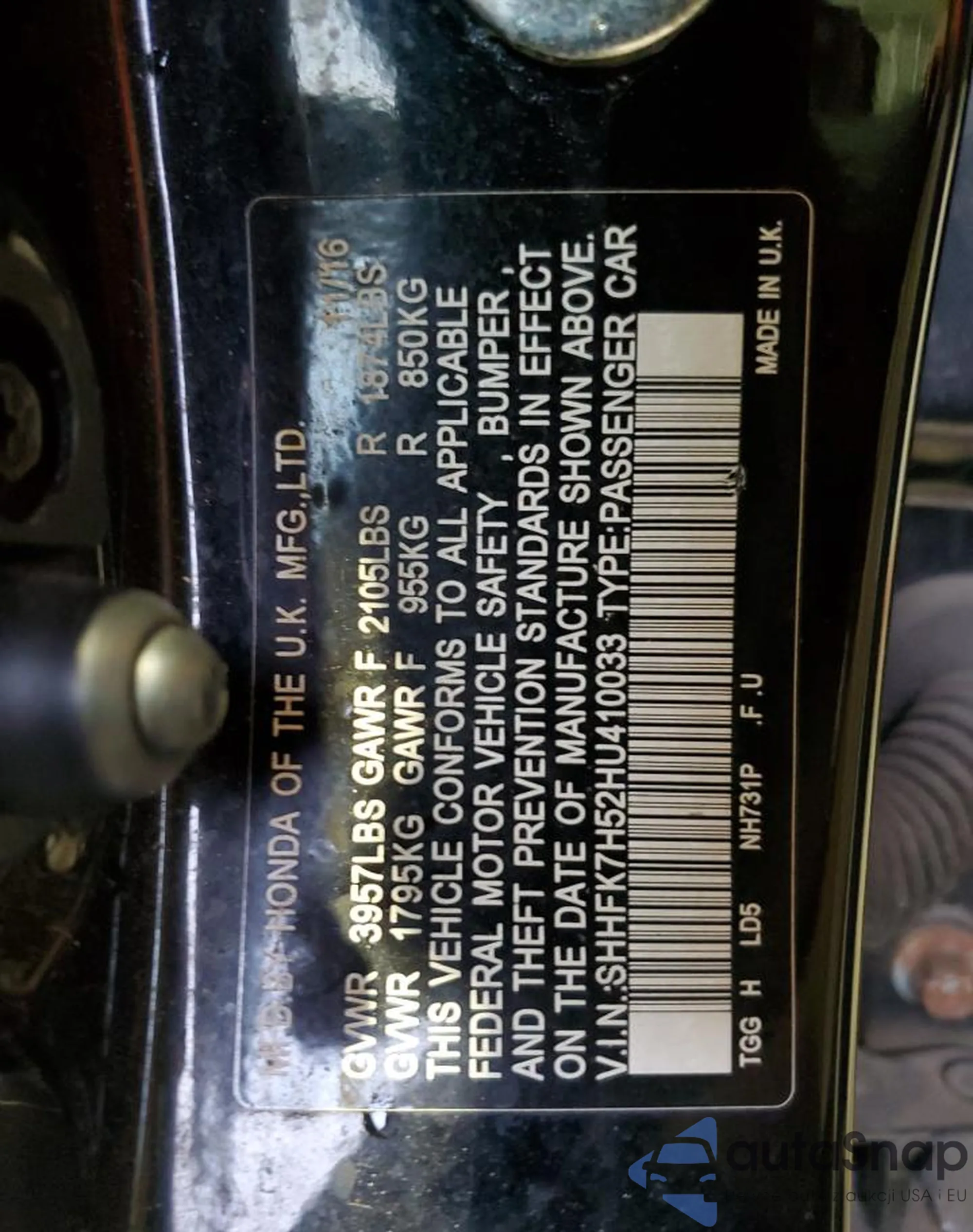 • VIN SHHFK7H52HU410033