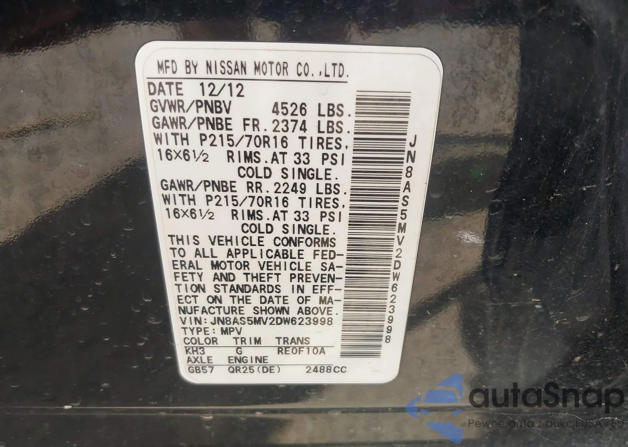 LOT: 43048756 VIN: JN8AS5MV2DW623998