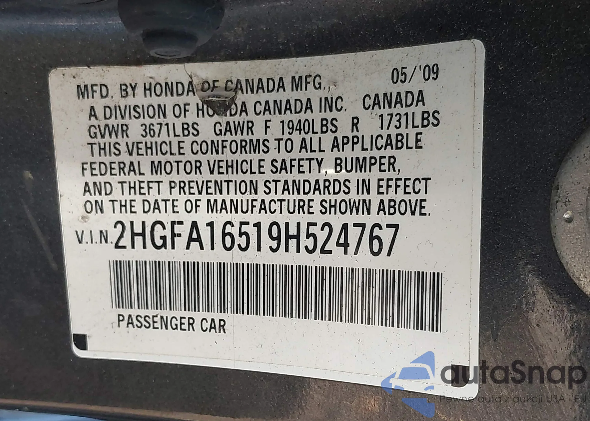 • VIN JHMGK5H57GX023958