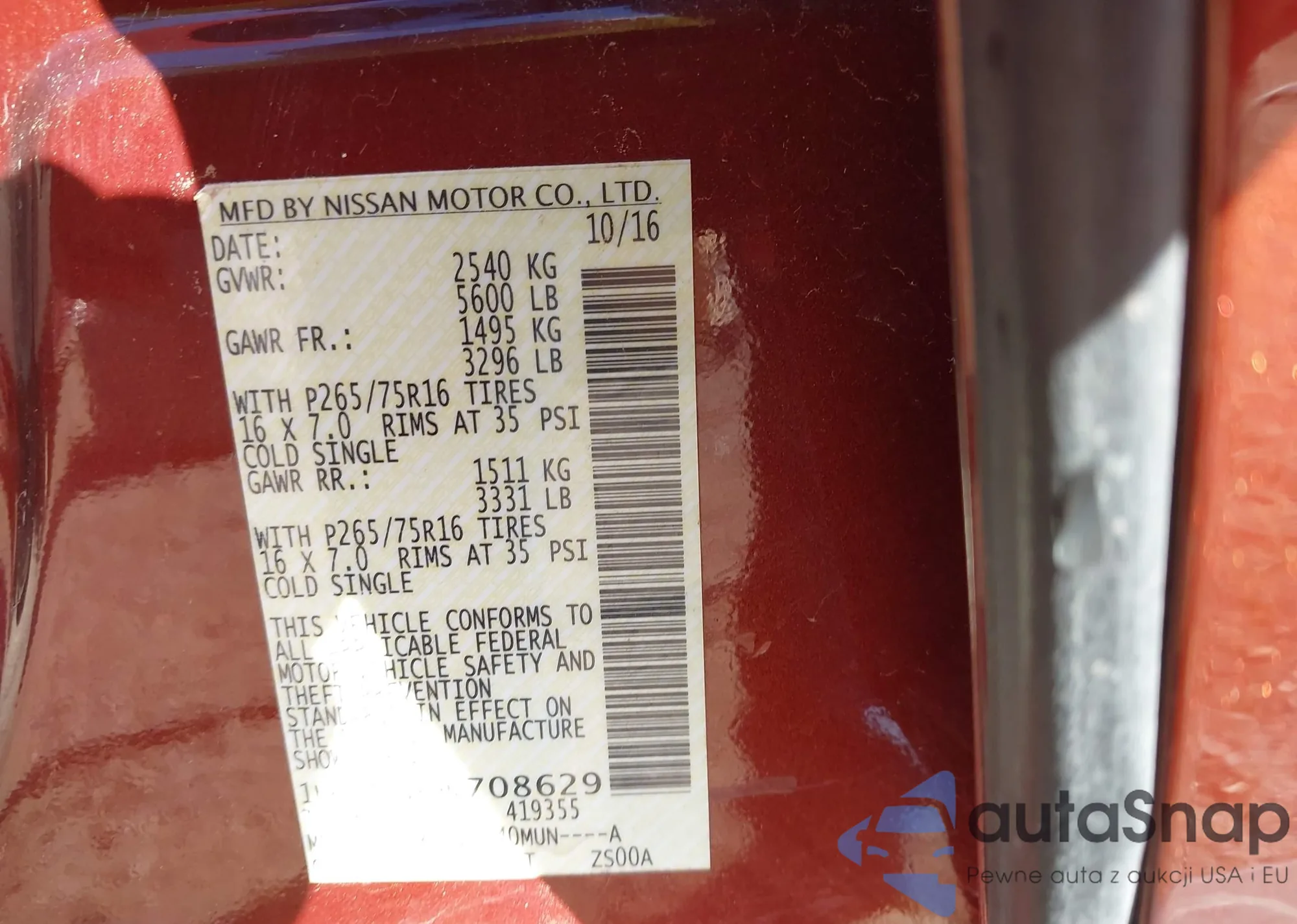 • VIN 1N6DD0EV6HN708629