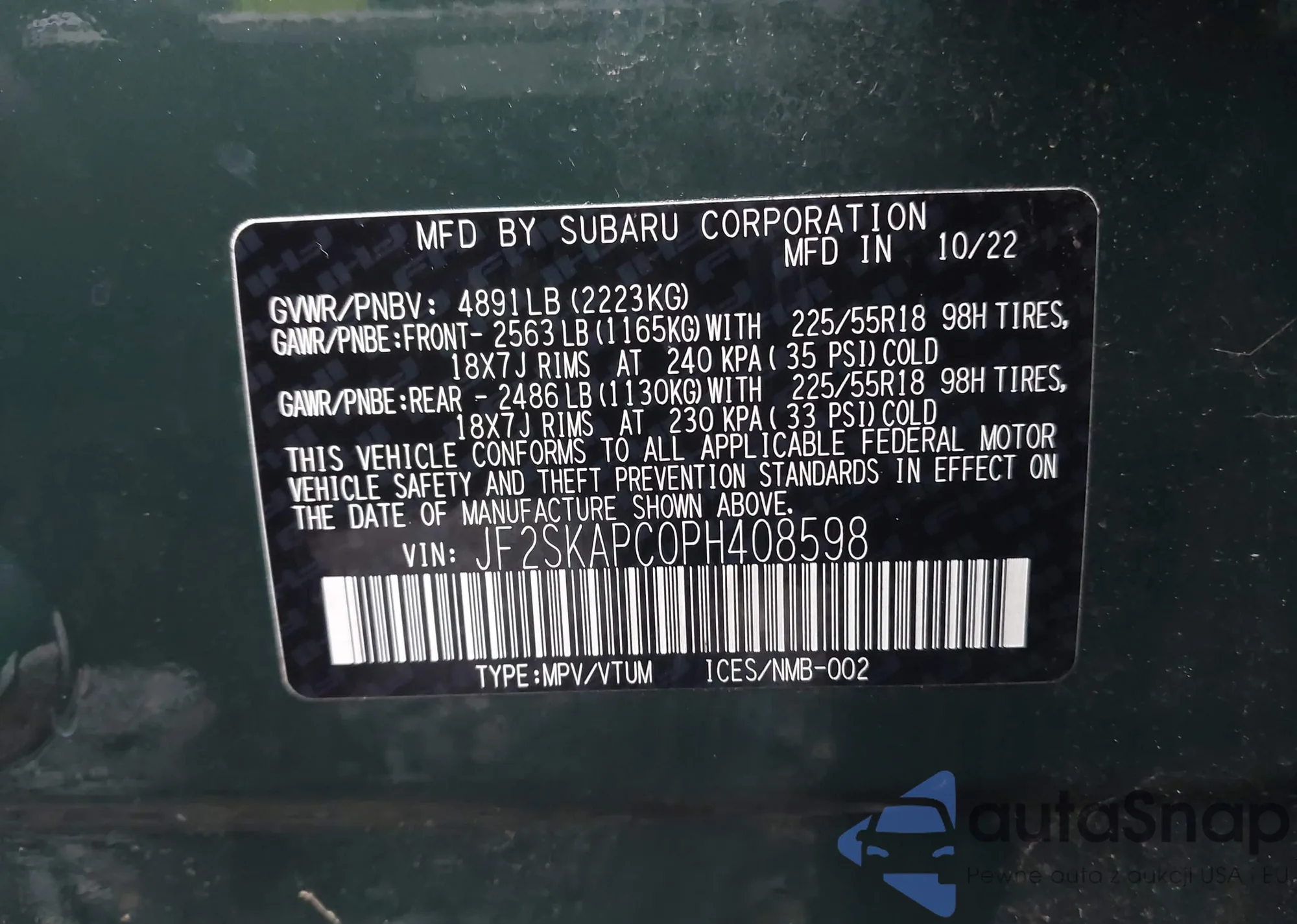 • VIN 3GPKHWRM9SS501800