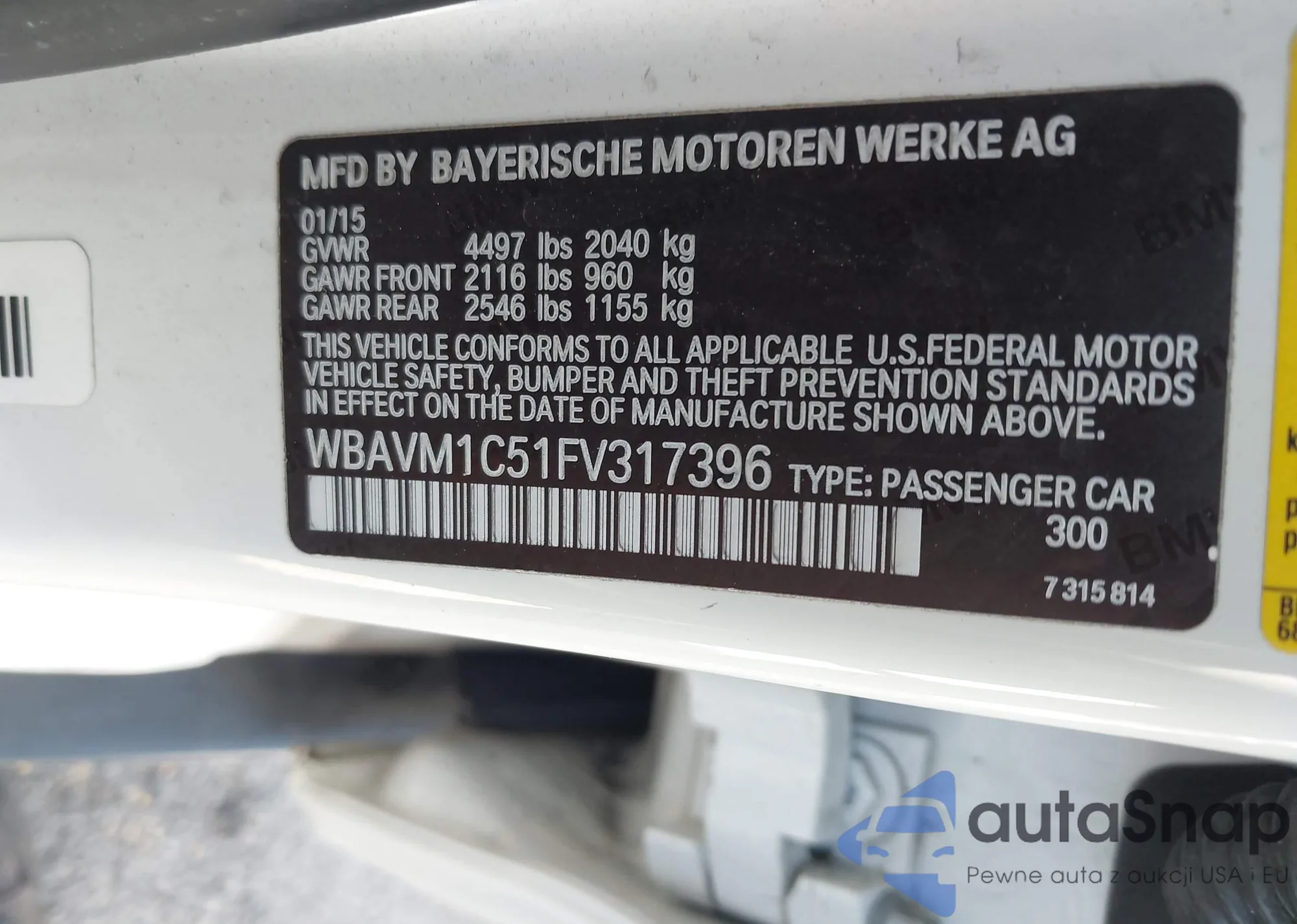 LOT: 43786180 VIN: WBAVM1C51FV317396