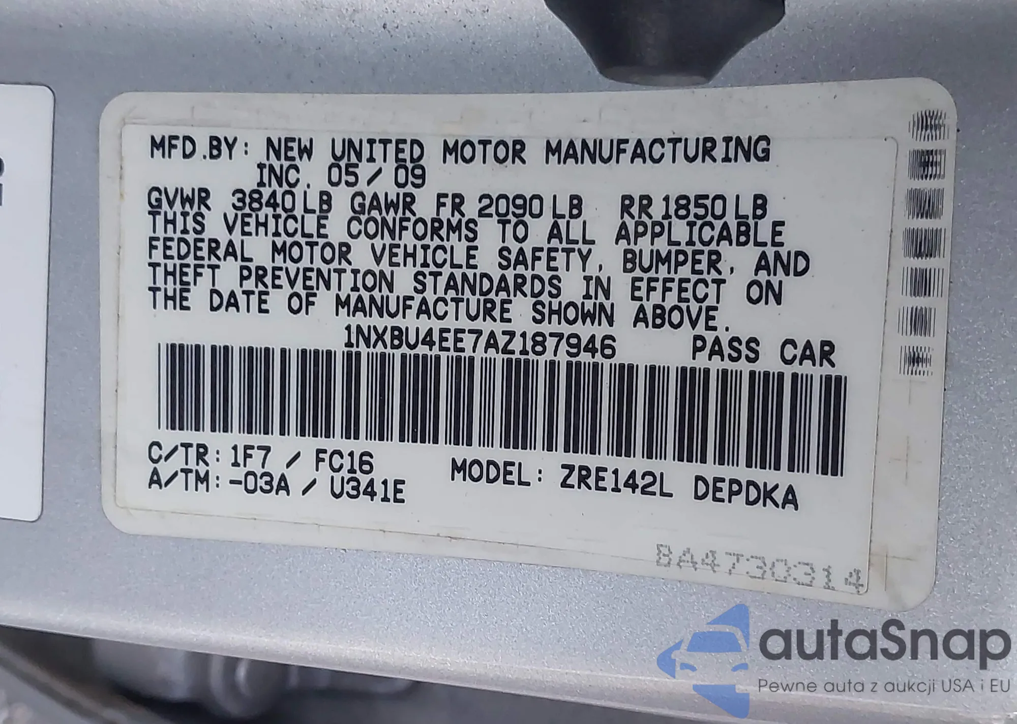 • VIN 4T1BF3EK4BU592318