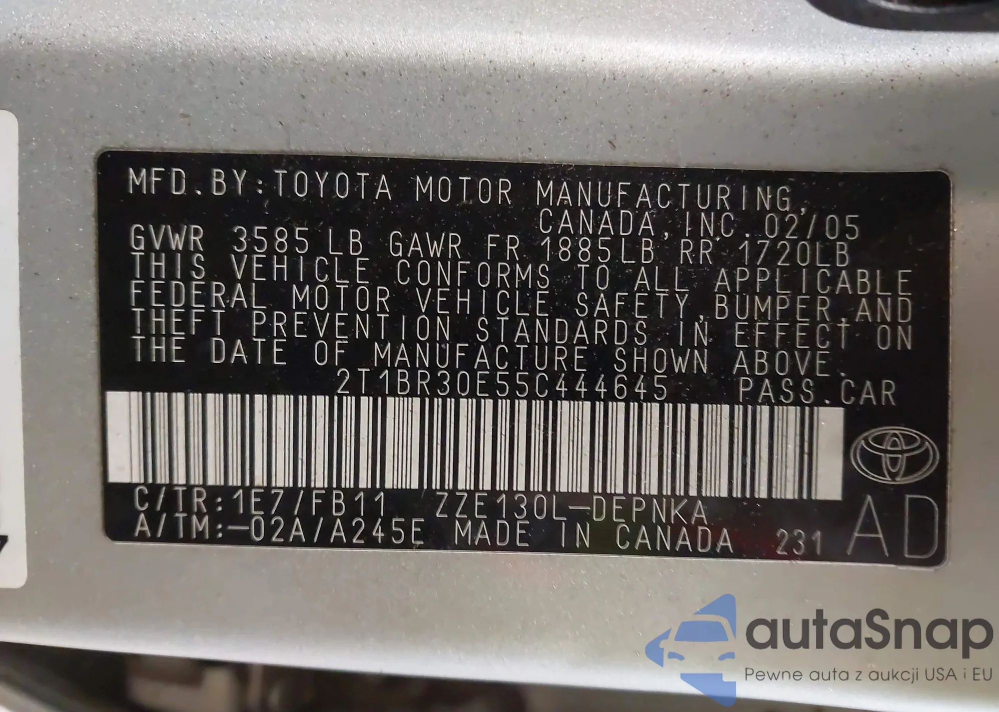 • VIN 2T1BR30E55C444645