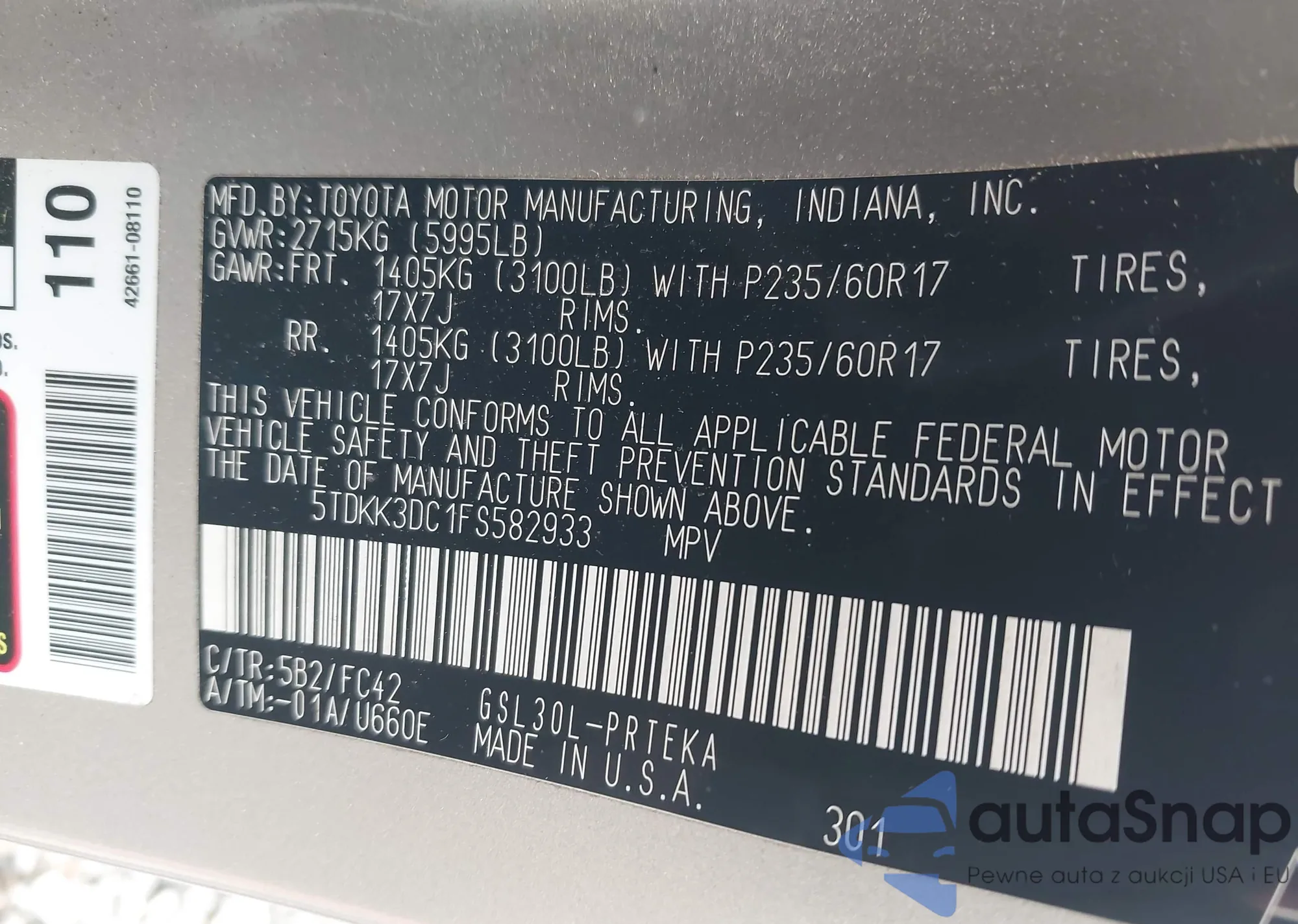 LOT: 43855659 VIN: 5TDKK3DC1FS582933