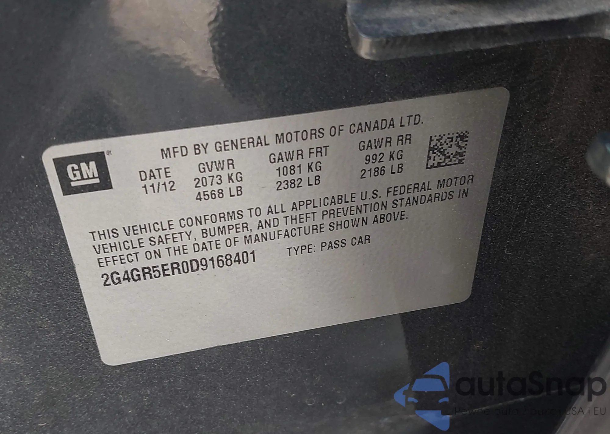 LOT: 43597209 VIN: 2G4GR5ER0D9168401