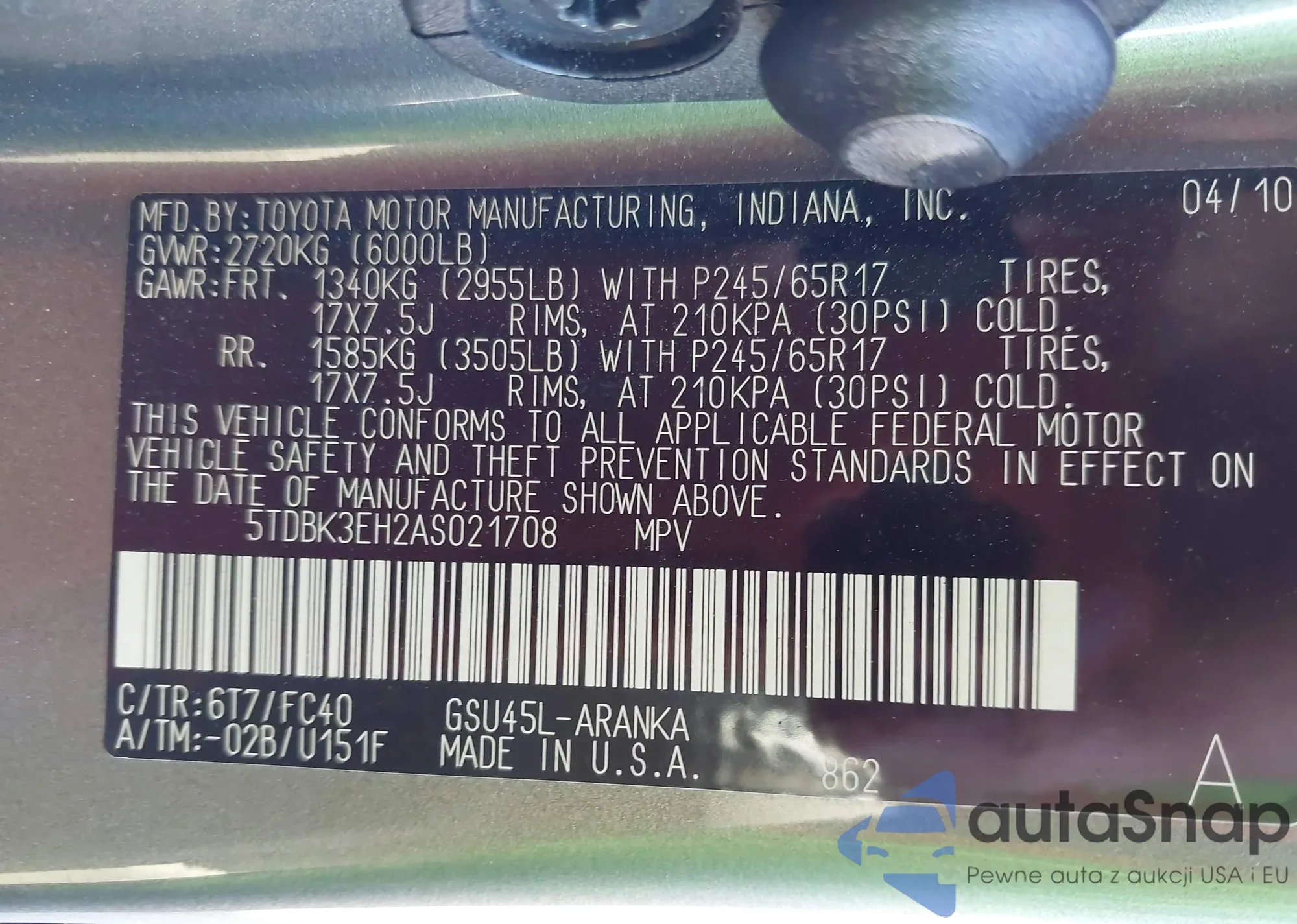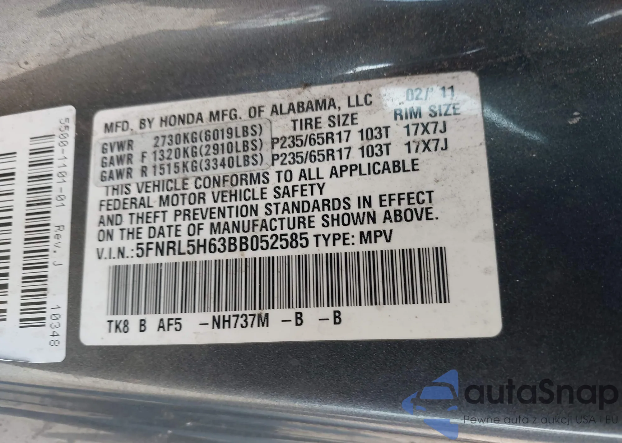 • VIN 7FARW1H82LE029421