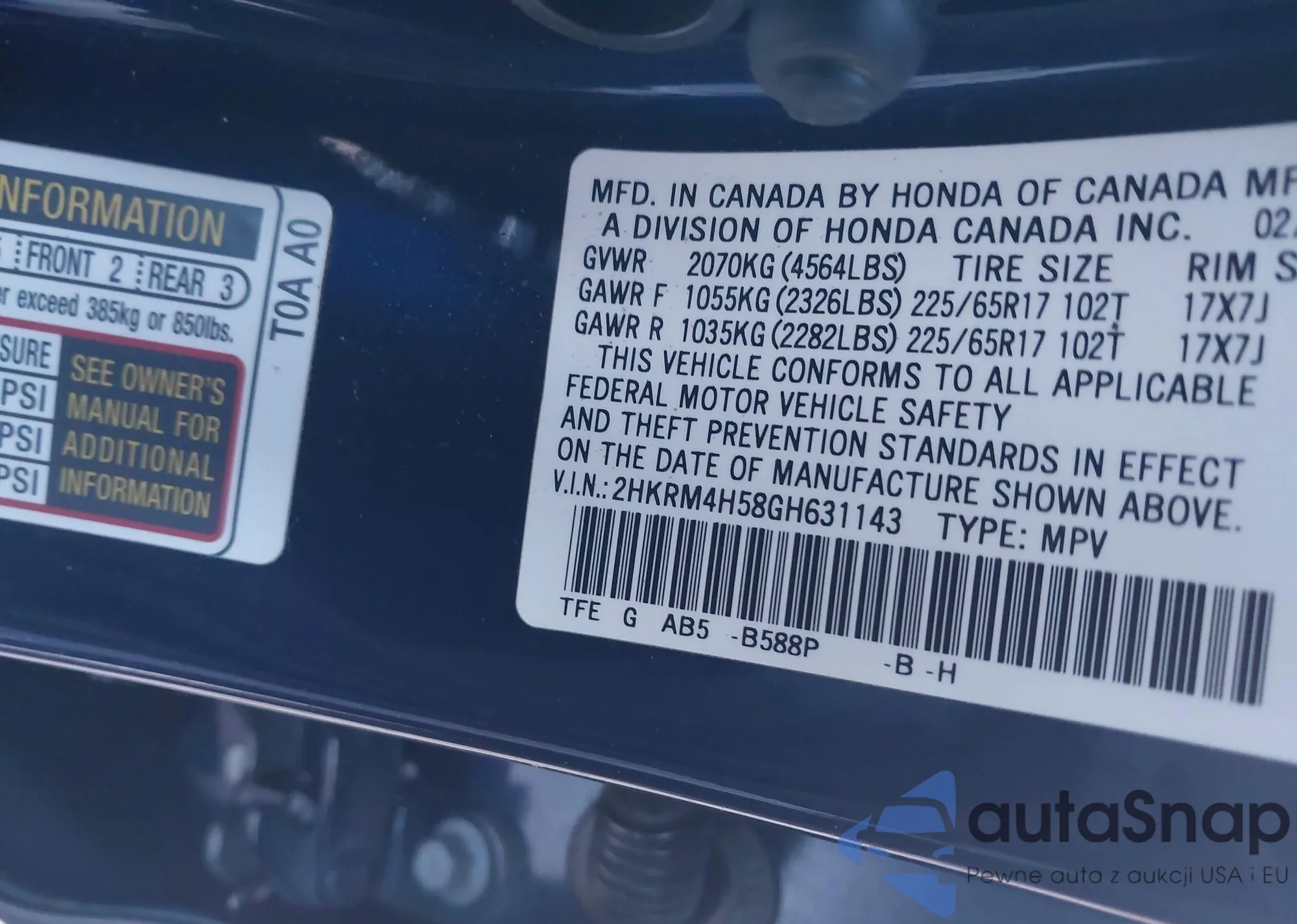 • VIN 2HKRM4H58GH631143