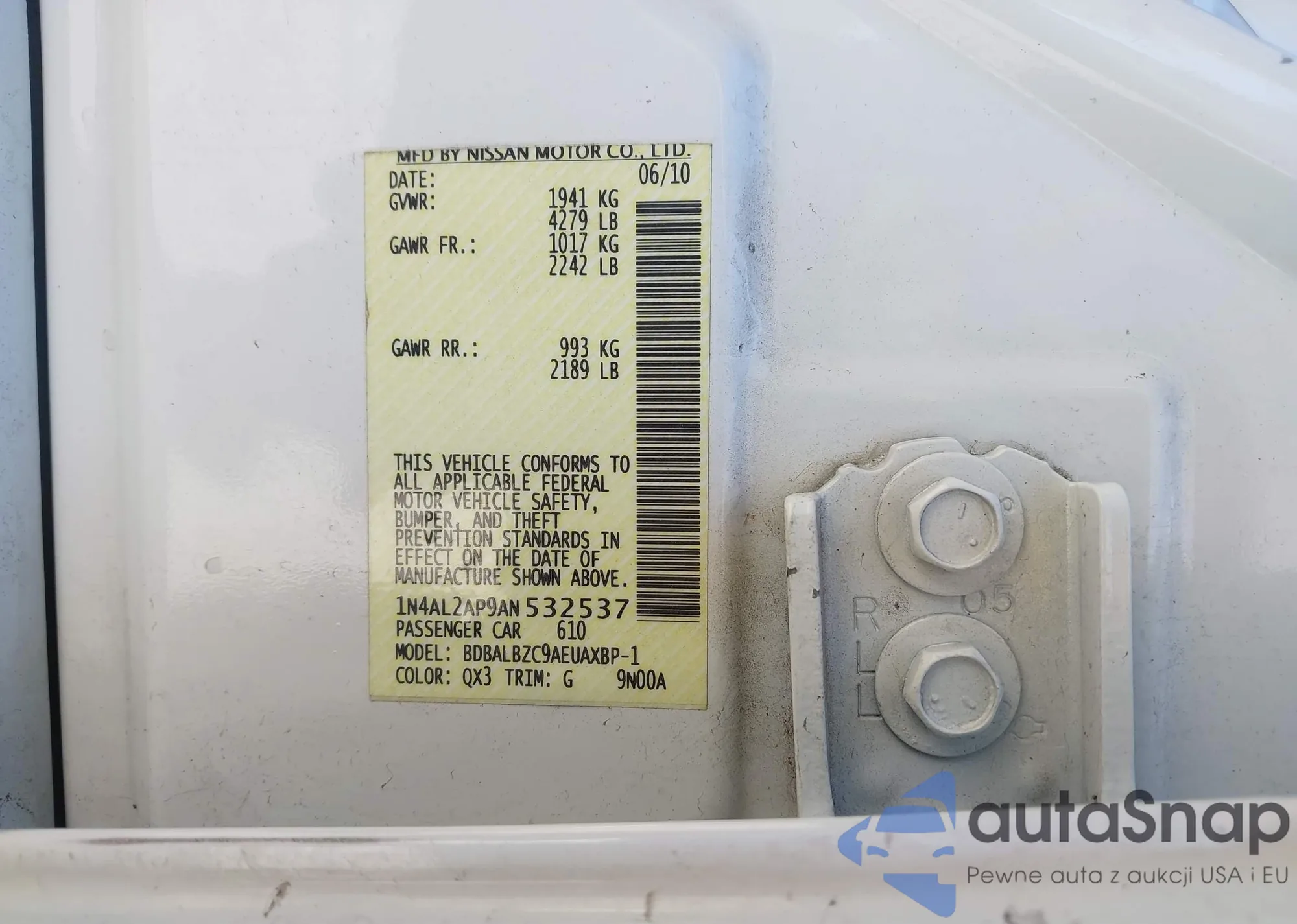 • VIN 1N4AL2AP9AN532537