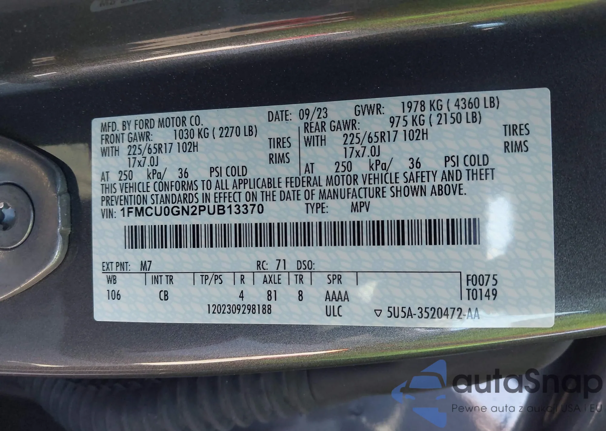 LOT: 43608490 VIN: 1FMCU0GN2PUB13370
