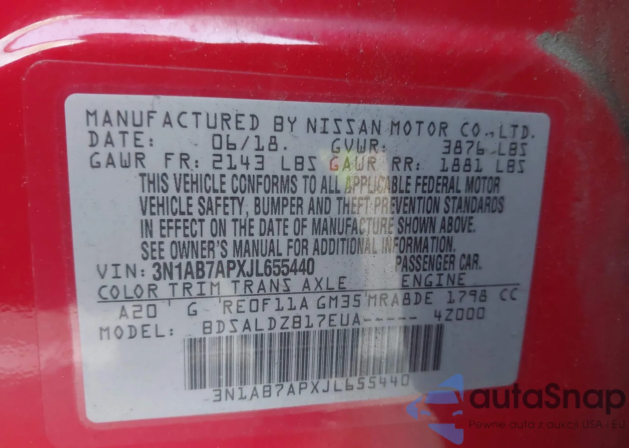 • VIN 3N1AB8DV4RY324125