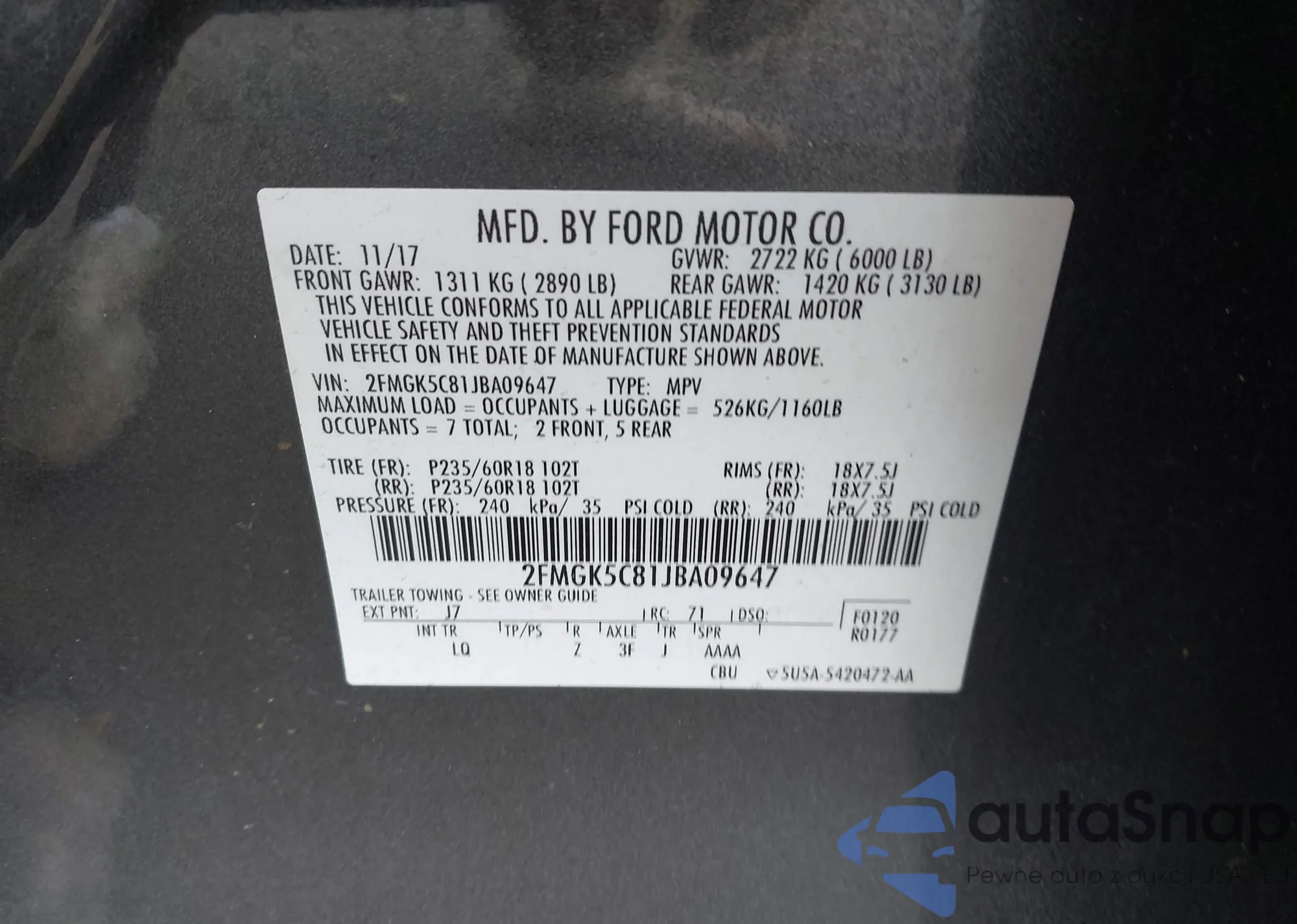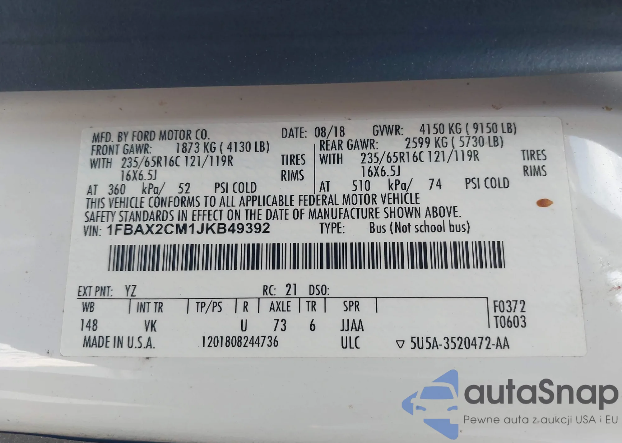 • VIN 1FBAX2CM1JKB49392
