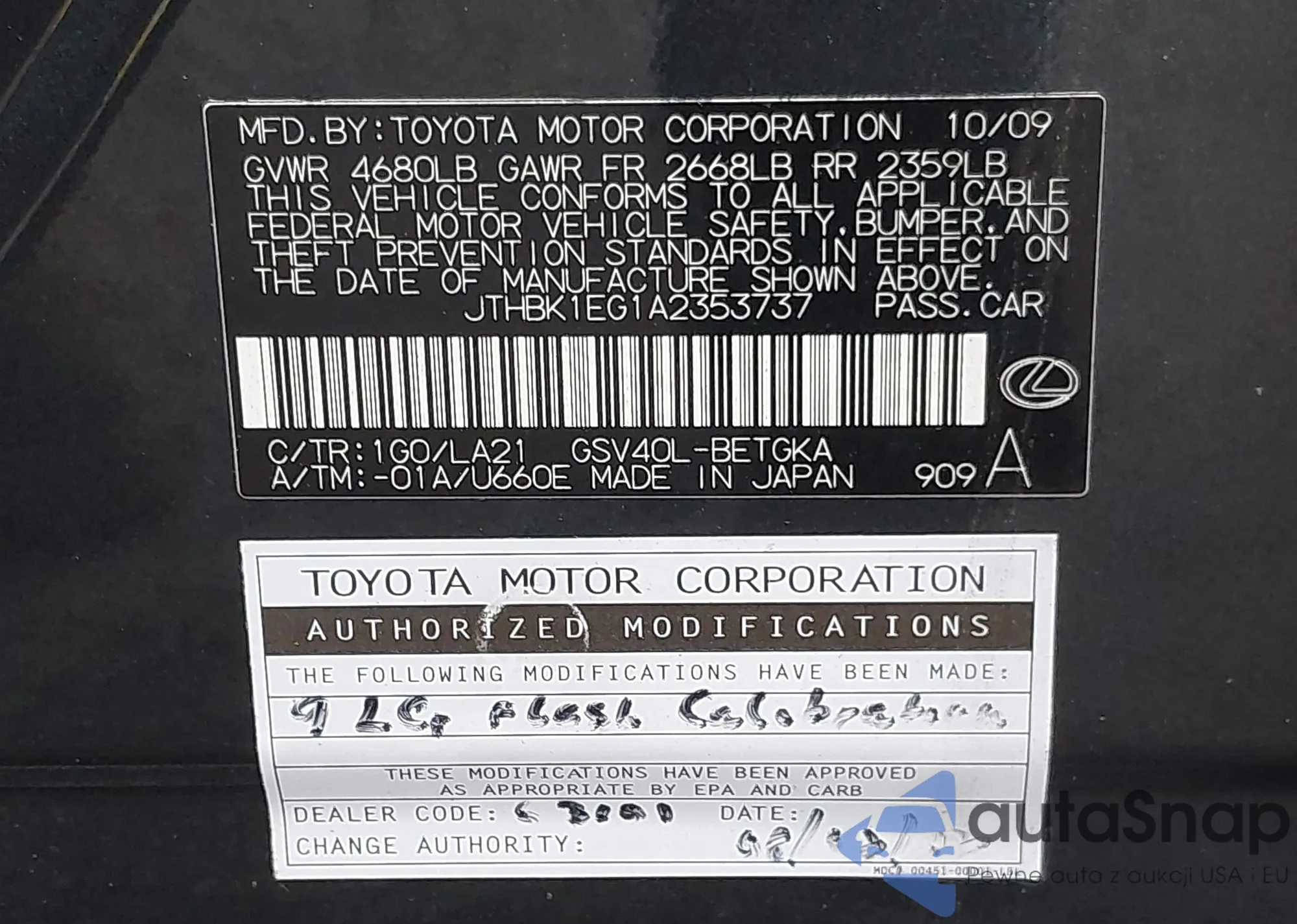 • VIN JTHBK1EG1A2353737