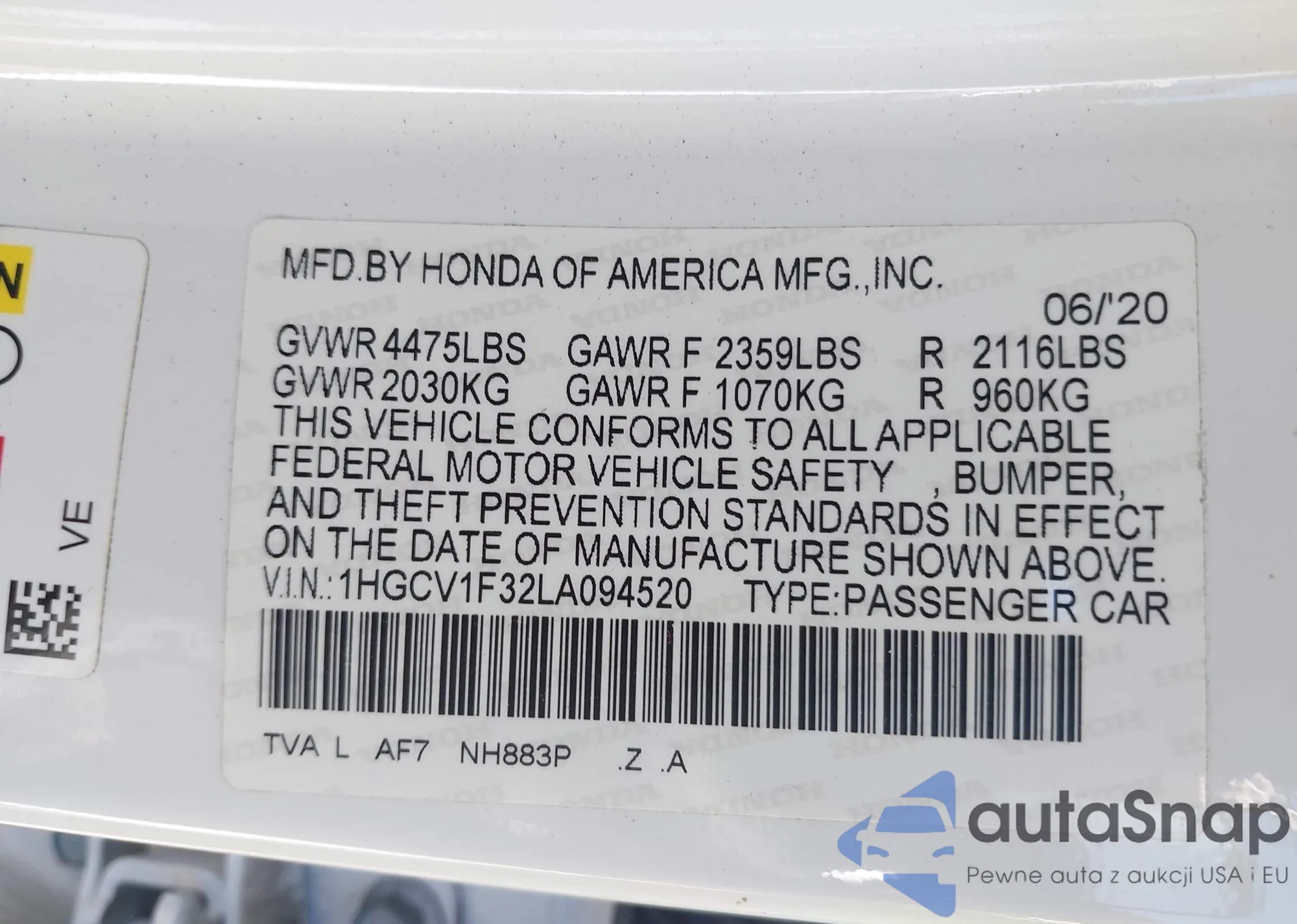• VIN 1HGCV1F32LA094520