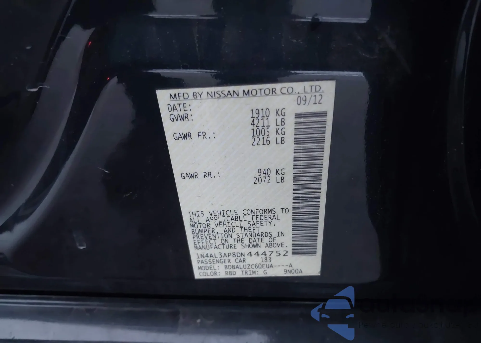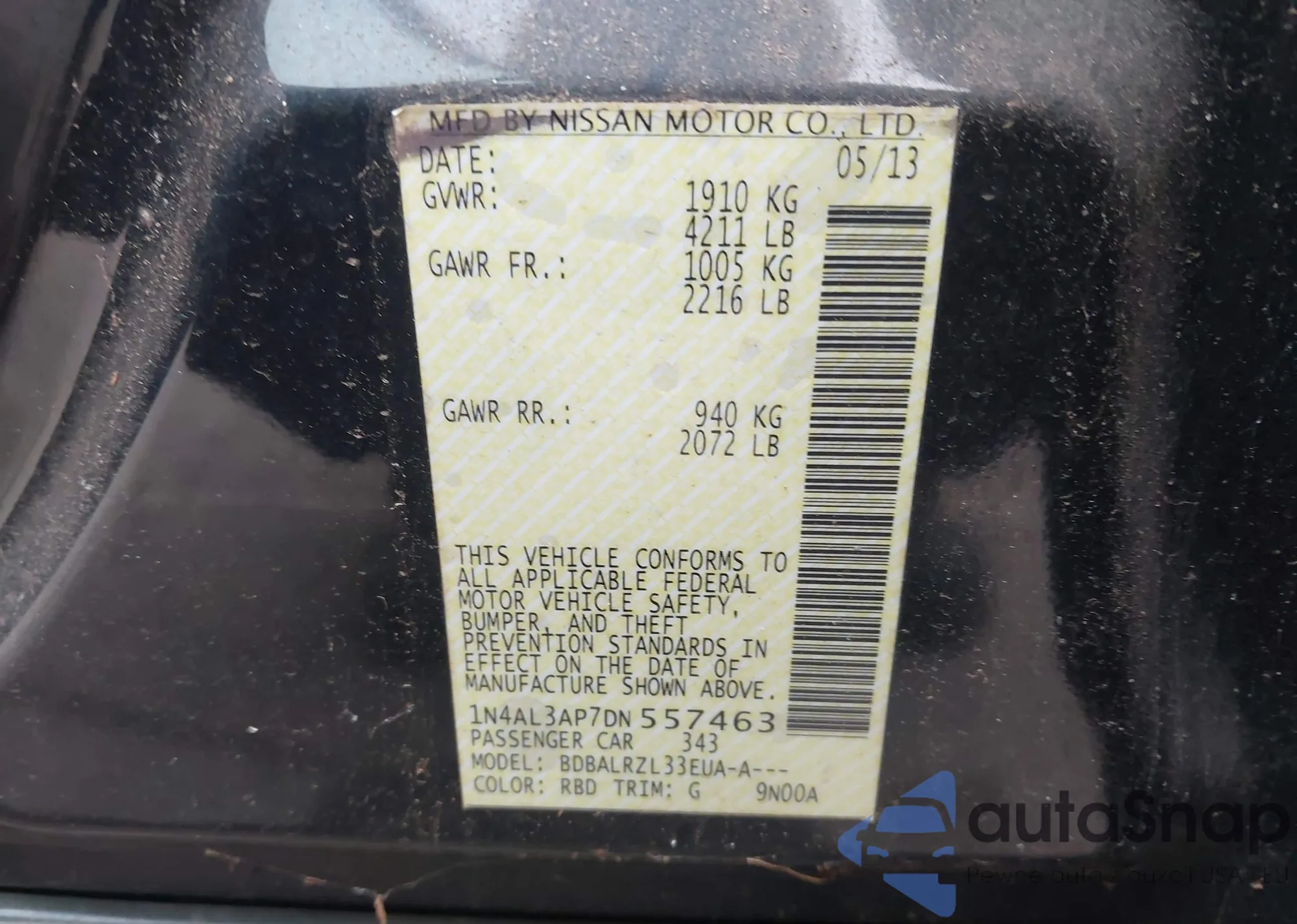 • VIN 1N4AL3AP7DN557463