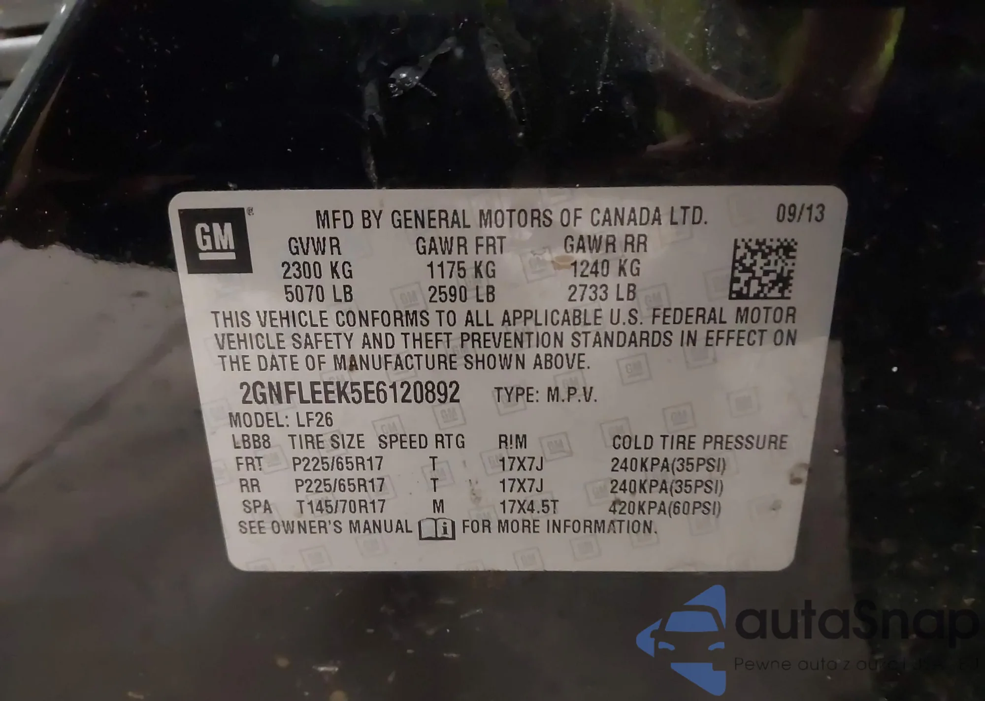• VIN 2GNFLEEK5E6120892