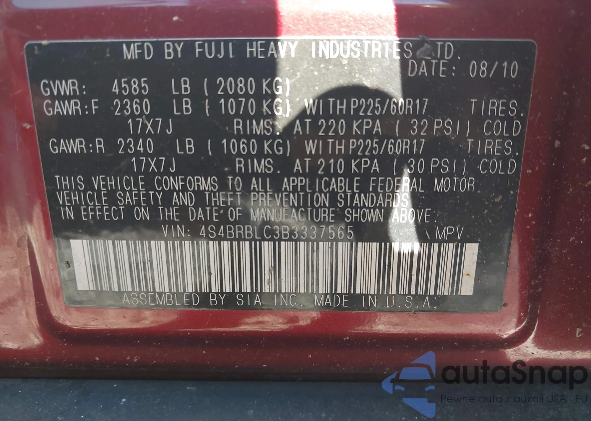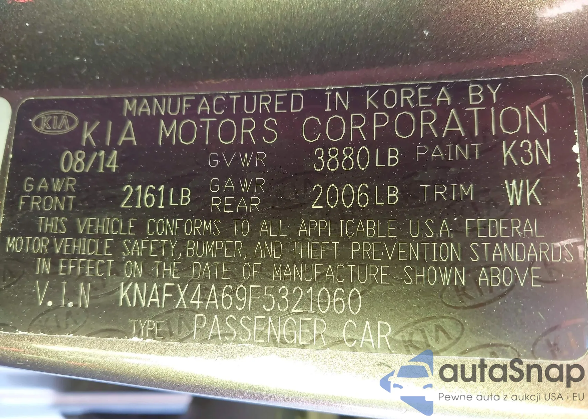 • VIN KNAFX4A69F5321060
