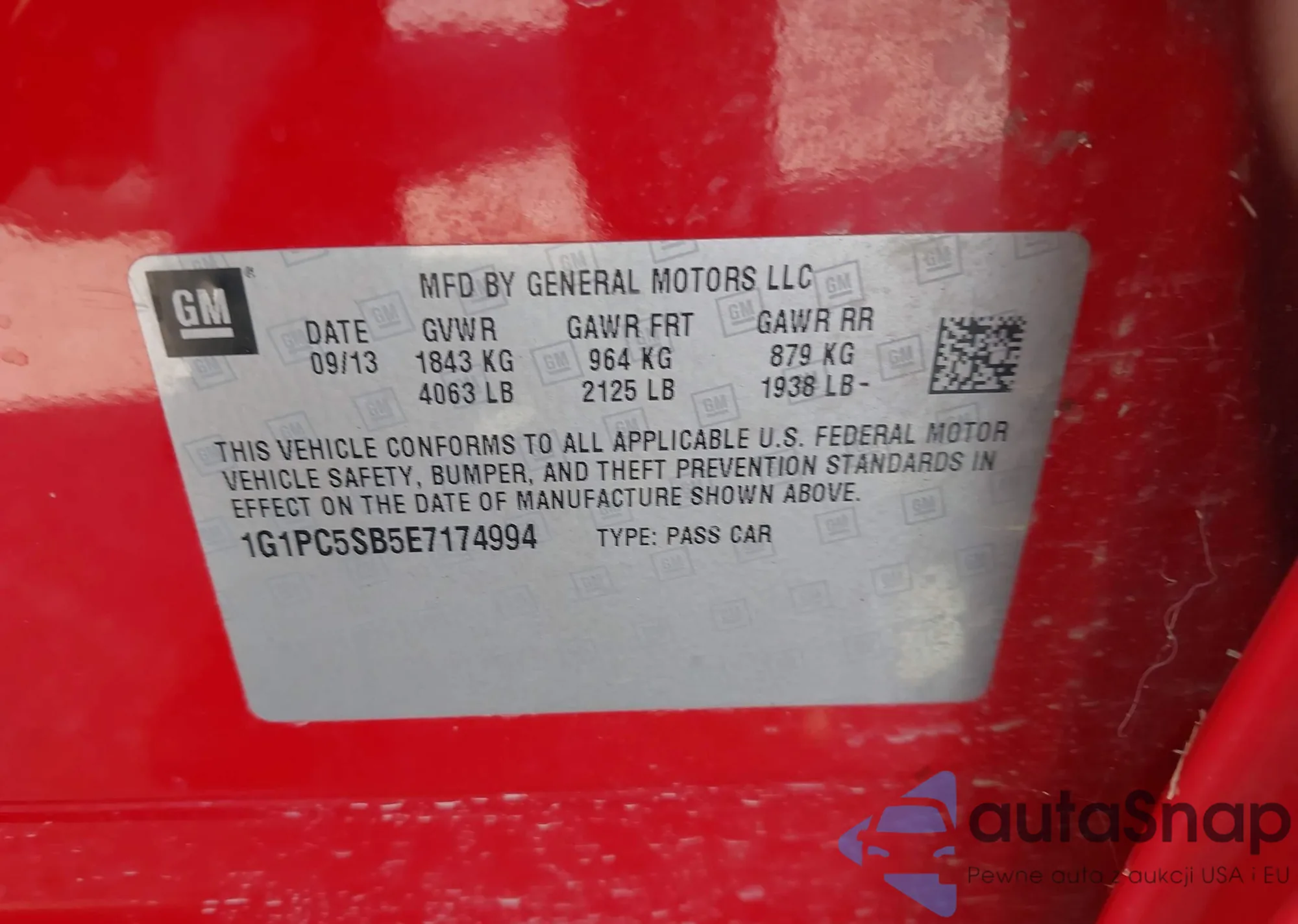LOT: 43580694 VIN: 1G1PC5SB5E7174994
