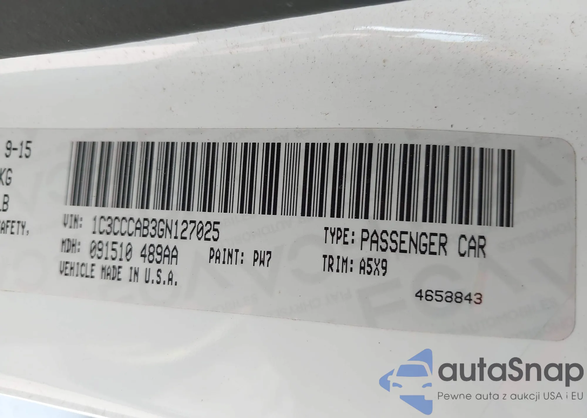 LOT: 43527584 VIN: 1C3CCCAB3GN127025