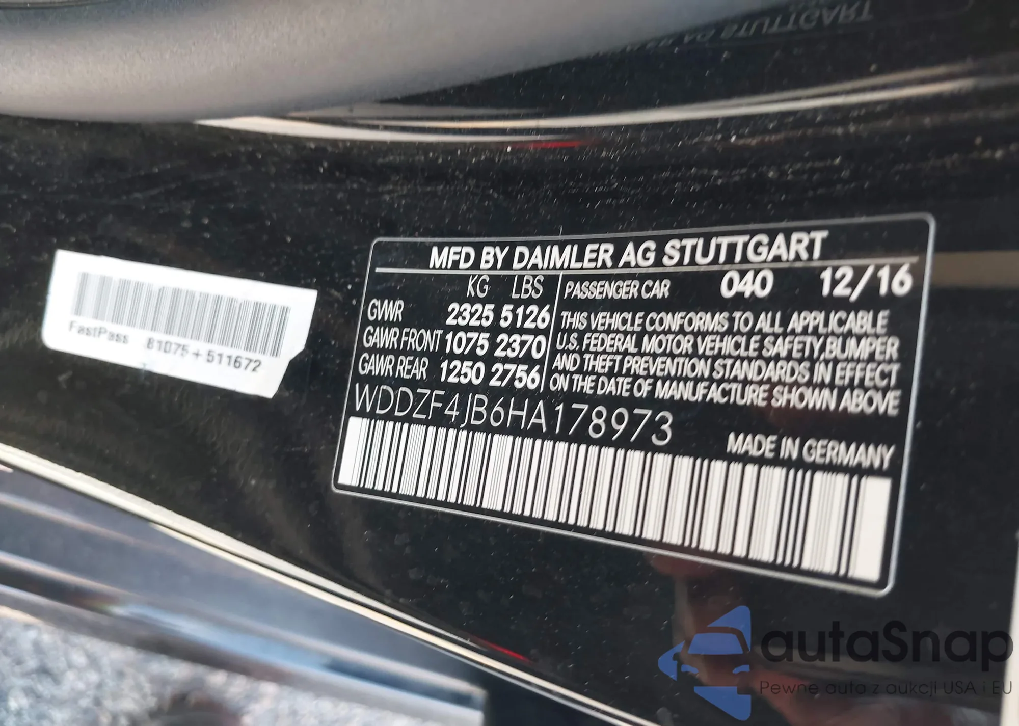 LOT: 43506756 VIN: WDDZF4JB6HA178973